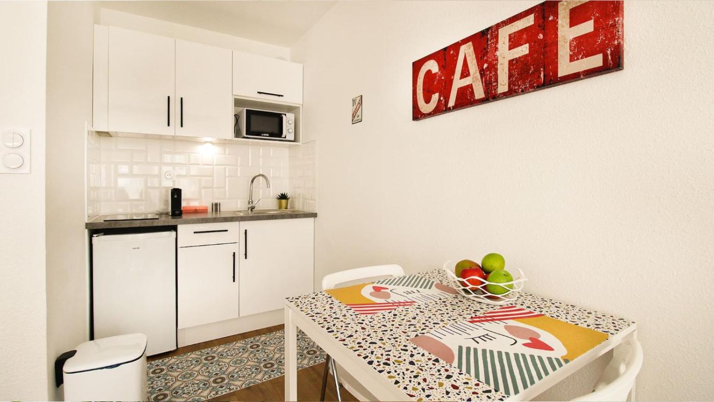 Appartement 1 Chambre. The well-fitted kitchen features a refrigerator, kitchenware, a microwave and a toaster. The studio provides a washing machine, a tea and coffee maker, as well as a private bathroom featuring a bath and a hairdryer.