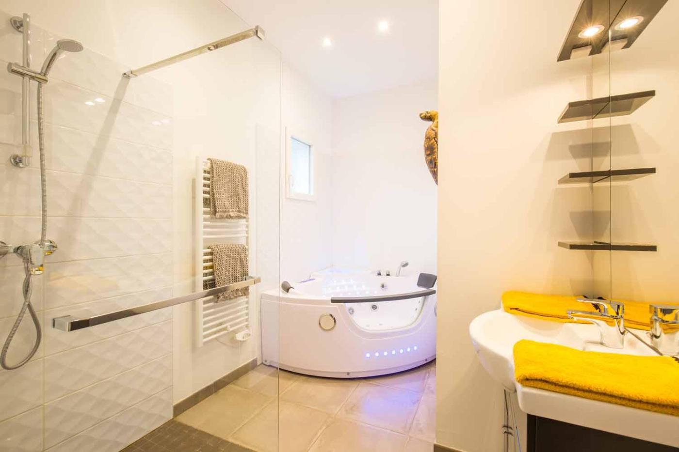 Chambre Double avec Baignoire Spa. This double rooms standout features are the private pool, hot tub and spa bath. The spacious double room offers a private entrance, a tea and coffee maker, a terrace with garden views as well as a private bathroom boasting a walk-in shower. The unit has 1 bed.