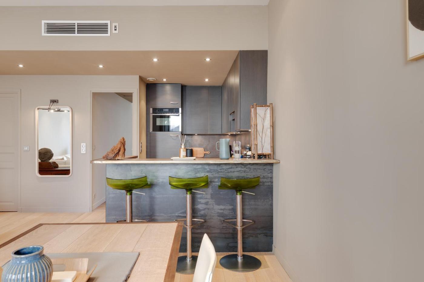 Appartement 1 Chambre. Guests can make meals in the kitchen that features a stovetop, a refrigerator, a dishwasher and kitchenware. The air-conditioned apartment features a flat-screen TV, a washing machine, a private entrance, soundproof walls as well as a quiet street view. The unit has 1 bed.
