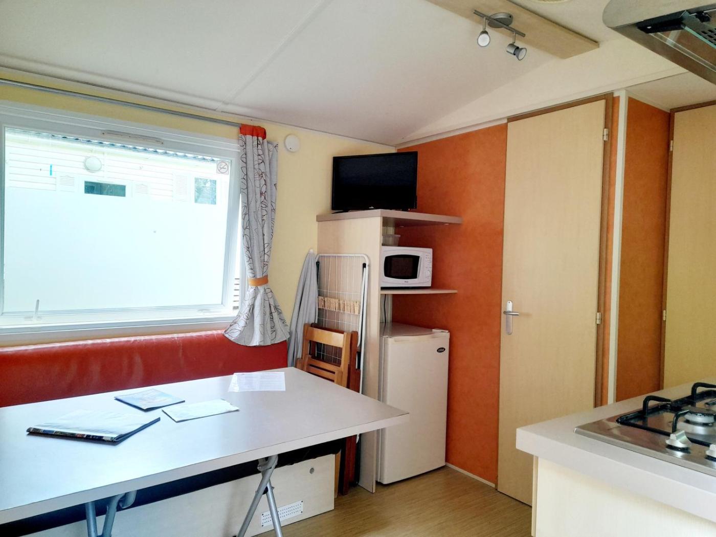 Mobile Home. This mobile home comes with a kitchenette, a seating area, 2 separate bedrooms and 1 bathroom with a shower. The well-fitted kitchenette has a stovetop, a refrigerator, kitchenware and a microwave. The mobile home features a coffee machine, a dining area, a wardrobe, a flat-screen TV, as well as garden views. The unit has 3 beds.