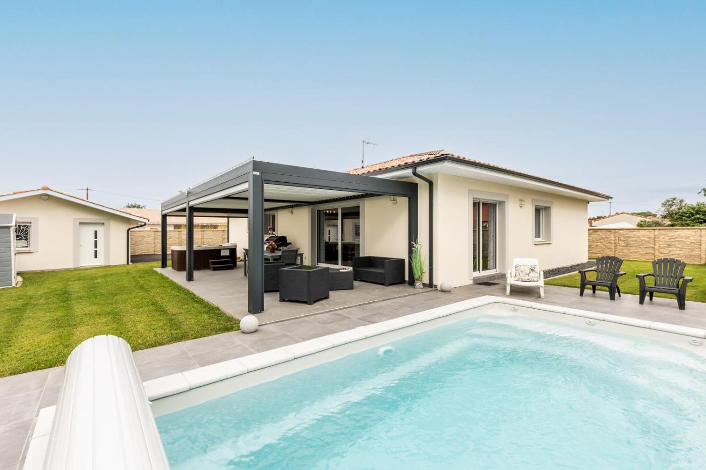 Villa - Vue sur Jardin. Guests will have a special experience as the villa features a private pool. Featuring a private entrance, this villa consists of a kitchen, 2 bedrooms and 1 bathroom with a bath and a shower. Guests will find a dishwasher, kitchenware, an oven and a microwave in the fully equipped kitchen. The villa also offers a barbecue. Boasting a terrace with garden views, this villa also provides a washing machine and a TV. The unit offers 3 beds.