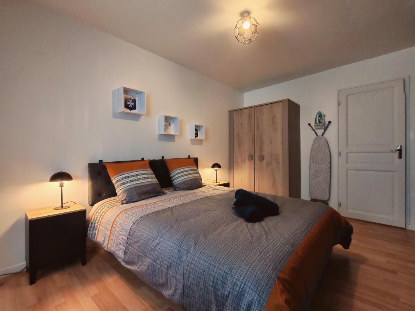 Appartement 2 Chambres. Featuring a private entrance, this spacious apartment also consists of 1 living room, 2 separate bedrooms and 1 bathroom with a bath. In the fully equipped kitchen, guests will find a stovetop, a refrigerator, kitchenware and an oven. The apartment provides a flat-screen TV with streaming services, a washing machine, a tea and coffee maker, a seating area as well as city views. The unit offers 3 beds.