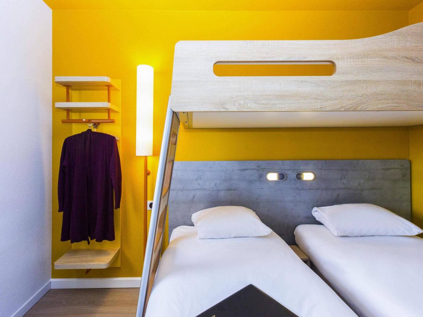Chambre Double avec Lit Superposé. Cette chambre triple climatisée et insonorisée dispose dune salle de bains privative, dune armoire ainsi que dune terrasse. Ce logement compte 2 lits. ;