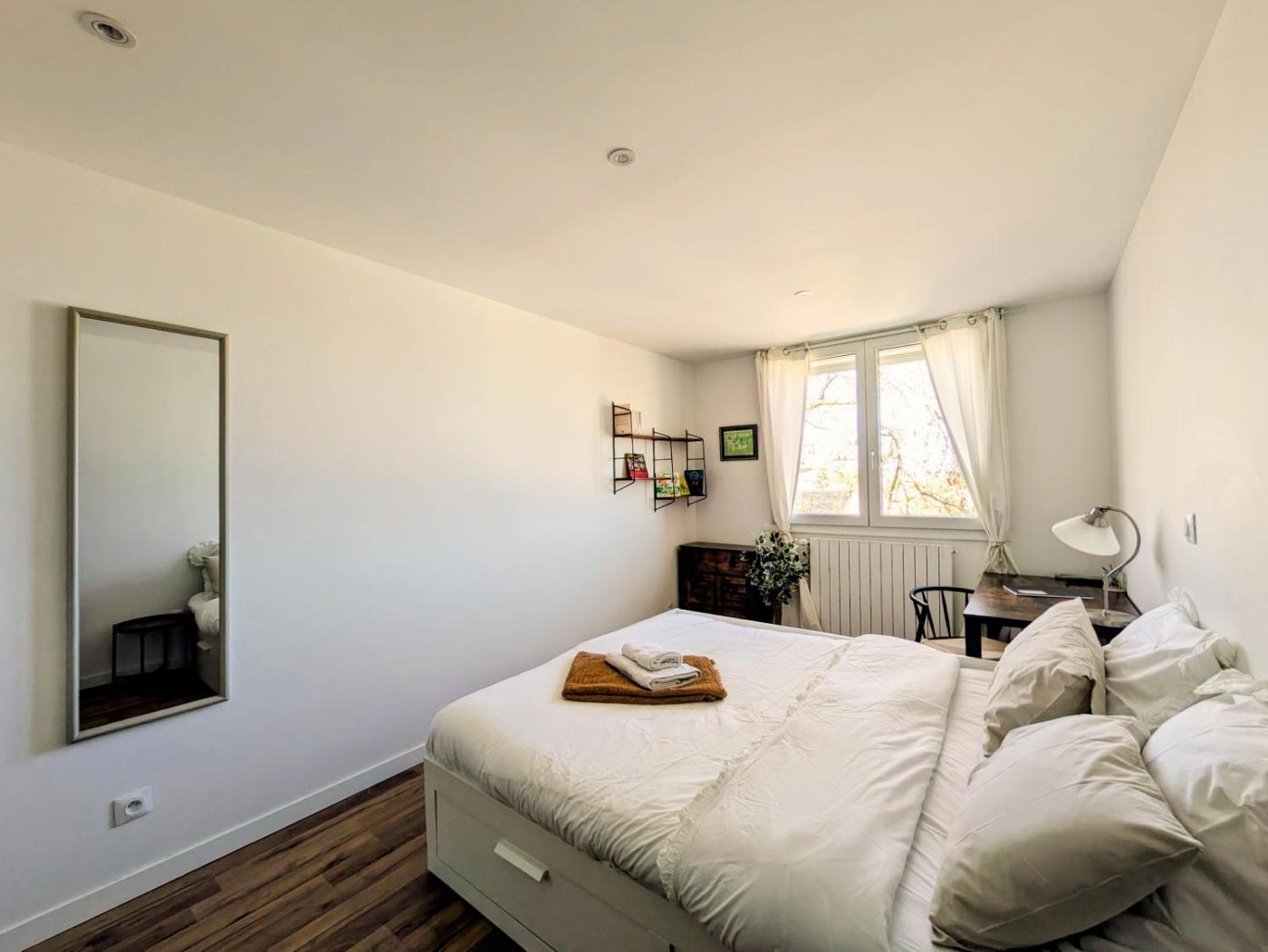 Appartement 2 Chambres - Vue sur Jardin. This spacious apartment consists of 1 living room, 2 separate bedrooms and 1 bathroom with a bath and free toiletries. The fully equipped kitchen features a stovetop, a refrigerator, a dishwasher and kitchenware. The apartment provides a washing machine, soundproof walls, a tea and coffee maker, a flat-screen TV, as well as garden views. The unit offers 3 beds.
