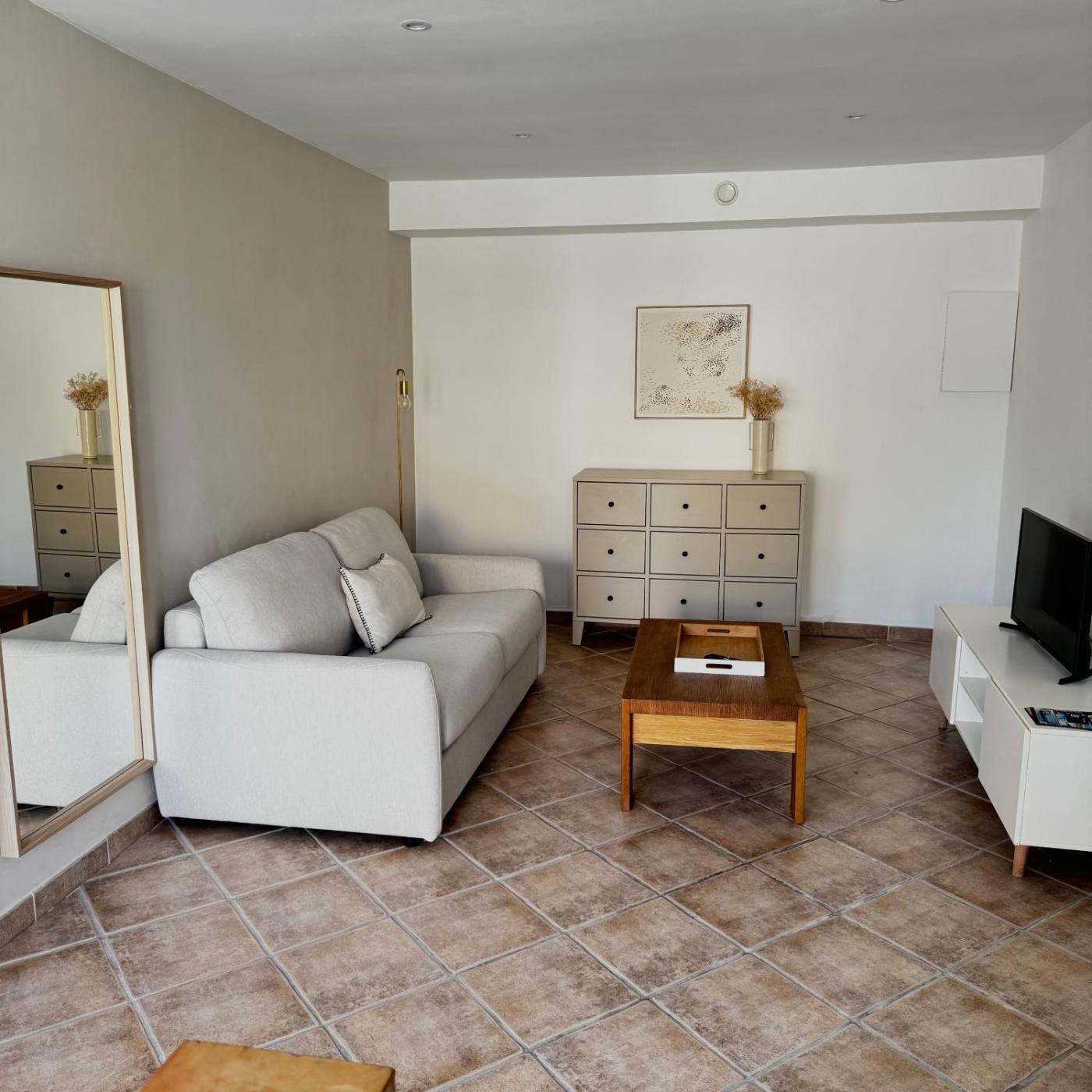 Cet appartement possède une terrasse, 1 chambre, un salon, ainsi qu’une cuisine bien équipée avec un réfrigérateur et un lave-vaisselle. Une télévision à écran plat est à votre disposition.