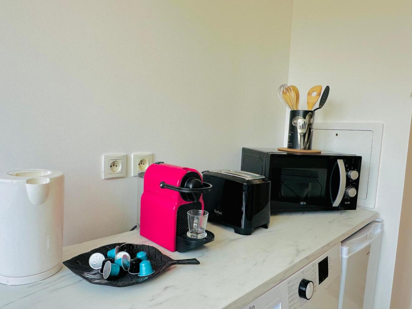 Appartement 1 Chambre avec Terrasse. This apartment includes 1 living room, 1 separate bedroom and 1 bathroom with a bath and a hairdryer. In the kitchen, guests will find a stovetop, an oven and a toaster. This apartment has a washing machine, a coffee machine, a flat-screen TV and a balcony. The unit has 2 beds.