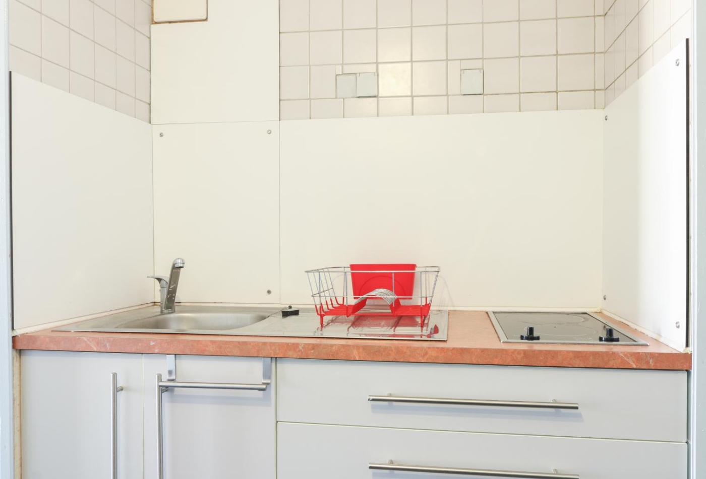 Cet appartement compte 1 chambre, une cuisine avec un réfrigérateur et un four, une télévision à écran plat, un coin salon, ainsi que 1 salle de bains comportant une baignoire ou une douche.