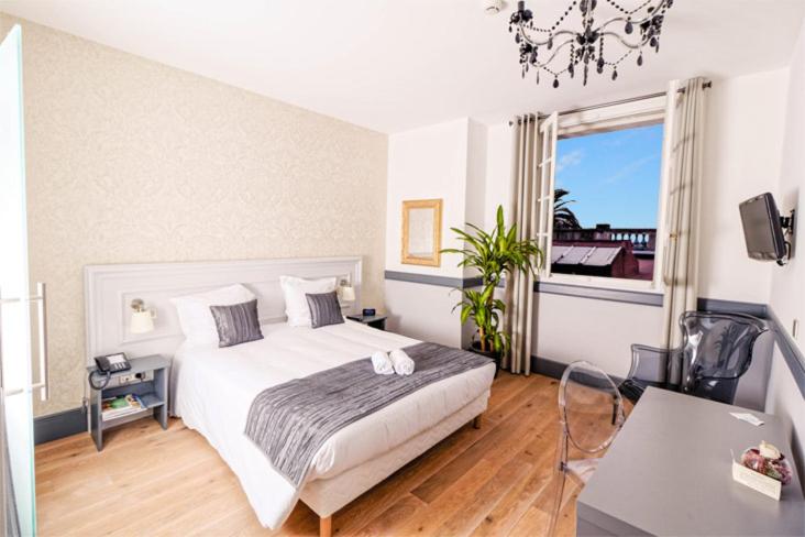 Chambre Lits Jumeaux Orientation Sud. La chambre lits jumeaux dispose de la climatisation, dune armoire ainsi que d’une salle de bains privative avec une douche et un sèche-cheveux. Ce logement comprend 2 lits.