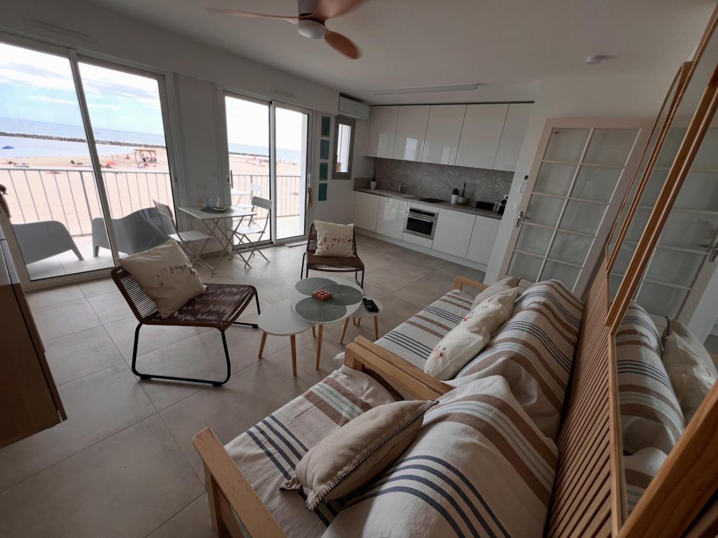 Proposant une plage privée et offrant une vue sur la mer, l’hébergement Les pieds dans leau - Carnon plage se trouve à Carnon-Plage, à respectivement quelques pas et 4,8 km de ces lieux d’intérêt : Plage du Centre et Parc des expositions de Montpellier. Cet hébergement en bord de mer met à votre disposition une terrasse, un parking privé gratuit et une connexion Wi-Fi gratuite.