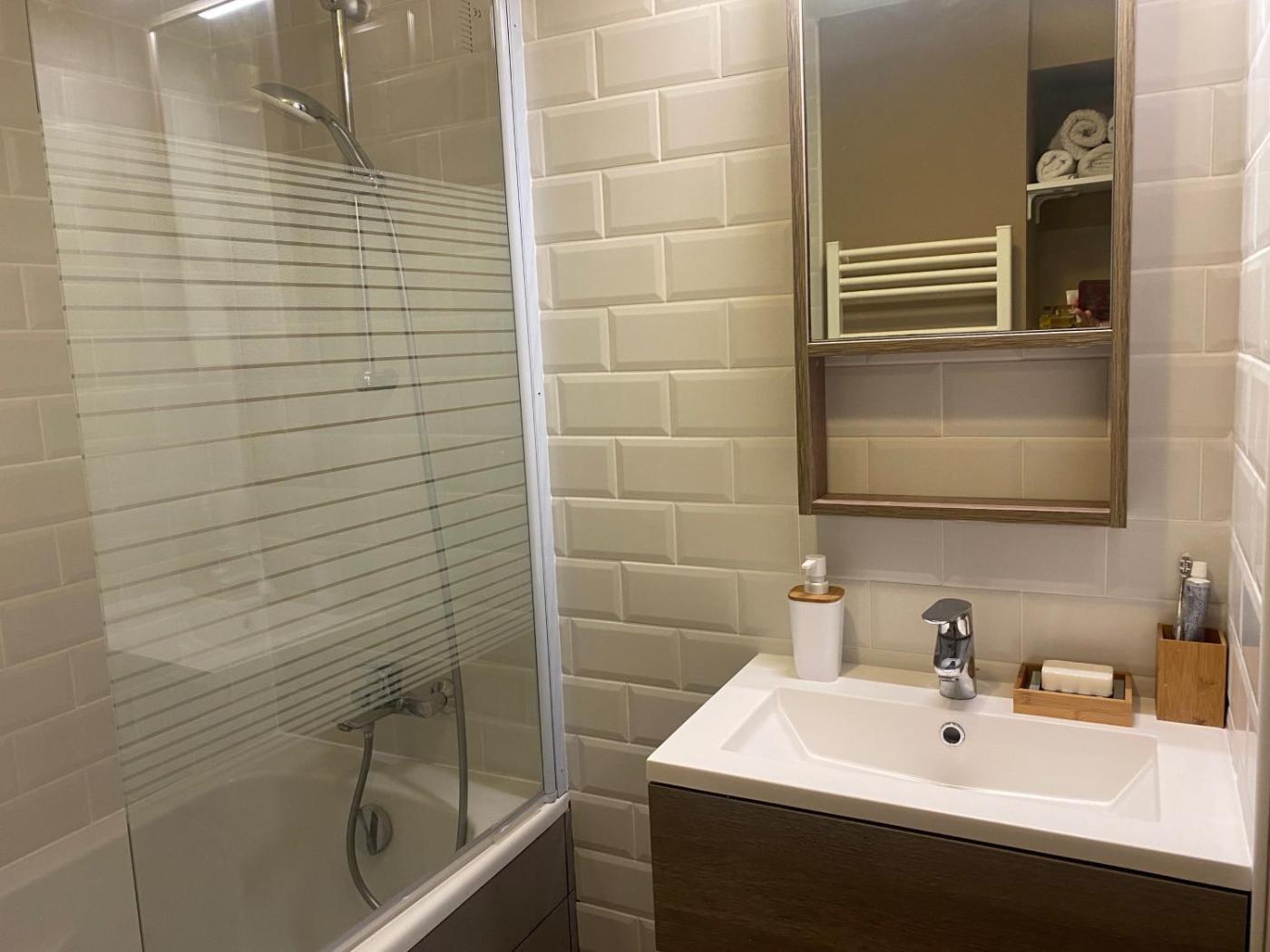 Appartement 1 Chambre. In the well-fitted kitchen, guests will find a stovetop, a refrigerator, a dishwasher and kitchenware. This apartment is air-conditioned and has a seating area with a flat-screen TV, a washing machine, soundproof walls, a coffee machine, as well as a dining area. The unit has 1 bed.