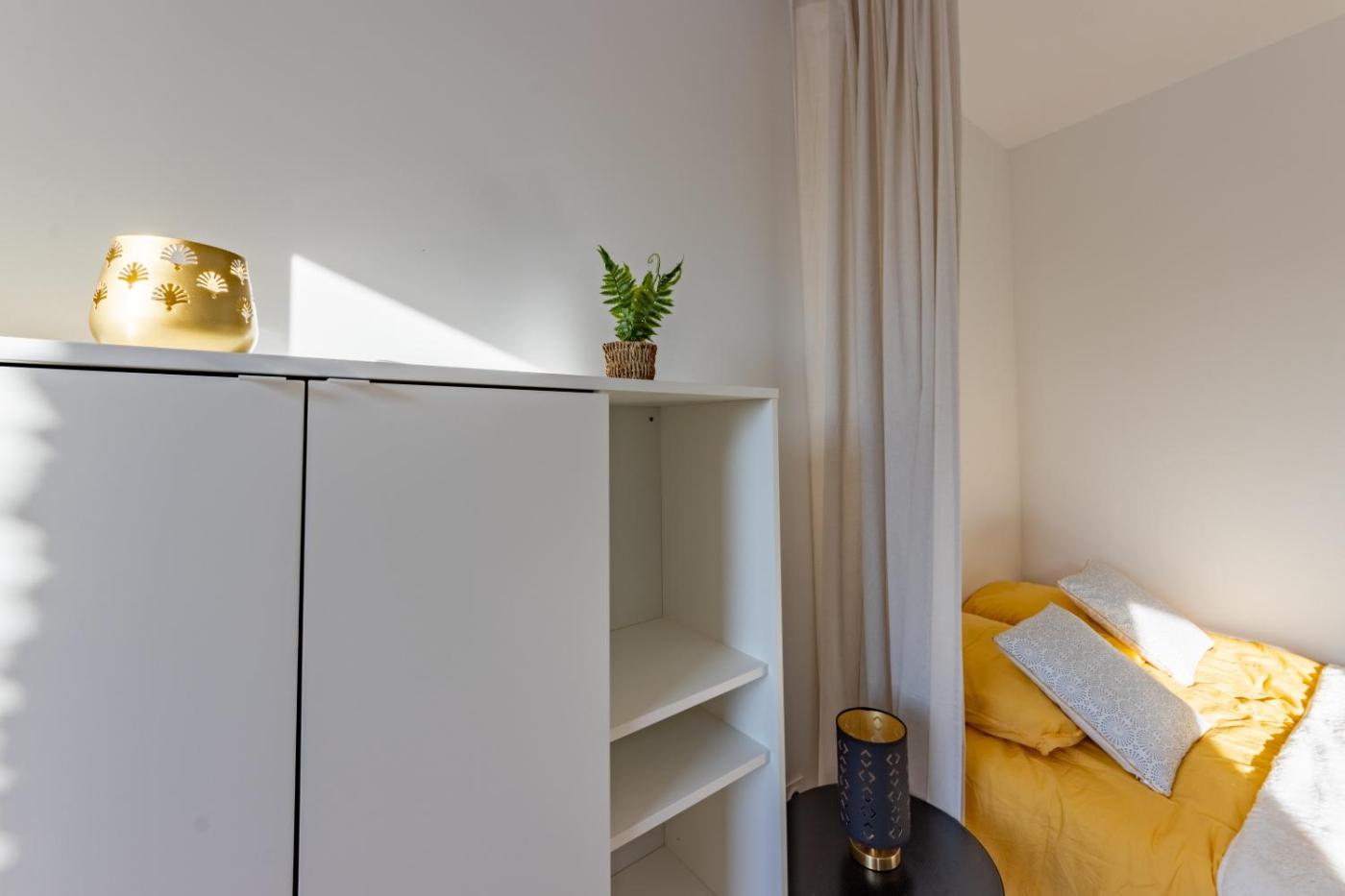 Cet appartement se compose de 1 chambre, dun salon, dune cuisine entièrement équipée avec un réfrigérateur et une machine à café, ainsi que de 1 salle de bains avec une douche et des articles de toilette gratuits. Des serviettes et du linge de lit sont disponibles.