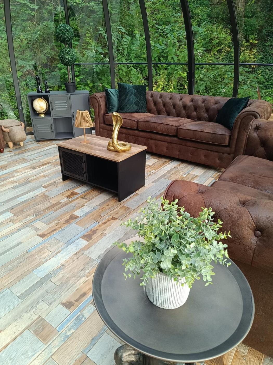 Bulle. Guests will have a special experience as this tent features a hot tub and a fireplace. The tent offers a private entrance, a tea and coffee maker, as well as a private bathroom featuring a shower and a hairdryer. Guests will find a stovetop, a refrigerator, kitchenware and an oven in the well-fitted kitchen. The tent also has a barbecue. The tent provides a dining area, a sofa, as well as a terrace and an outdoor dining area. The unit offers 2 beds.