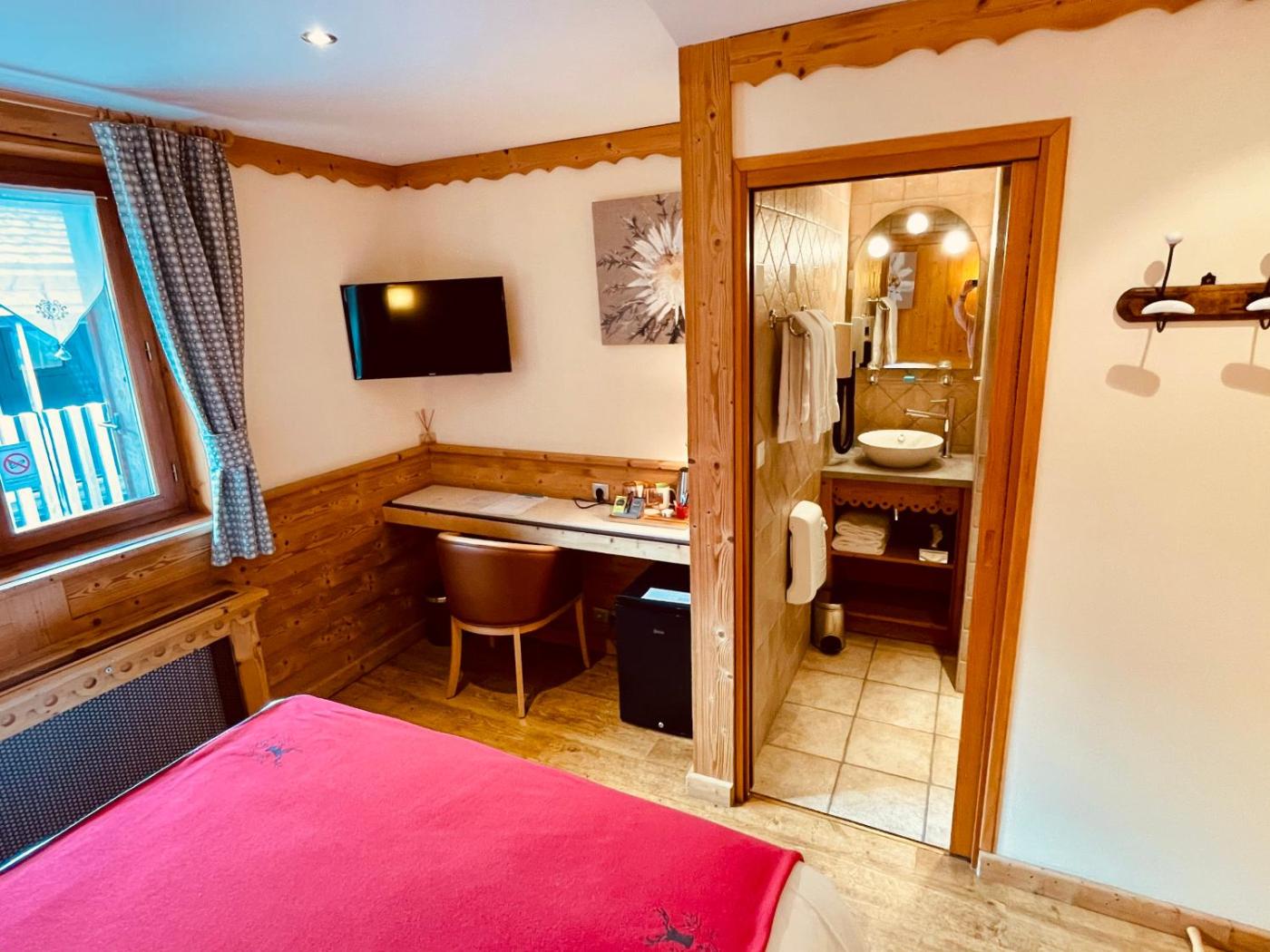 Chambre Familiale Standard. Revêtue de parquet, cette chambre familiale dispose du chauffage ainsi que dune salle de bains privative avec baignoire et sèche-cheveux. Cette chambre familiale avec vue sur la montagne dispose d’une télévision par câble à écran plat, d’un plateaubouilloire, d’une armoire et d’un coffre-fort. Ce logement comprend 2 lits. ;
