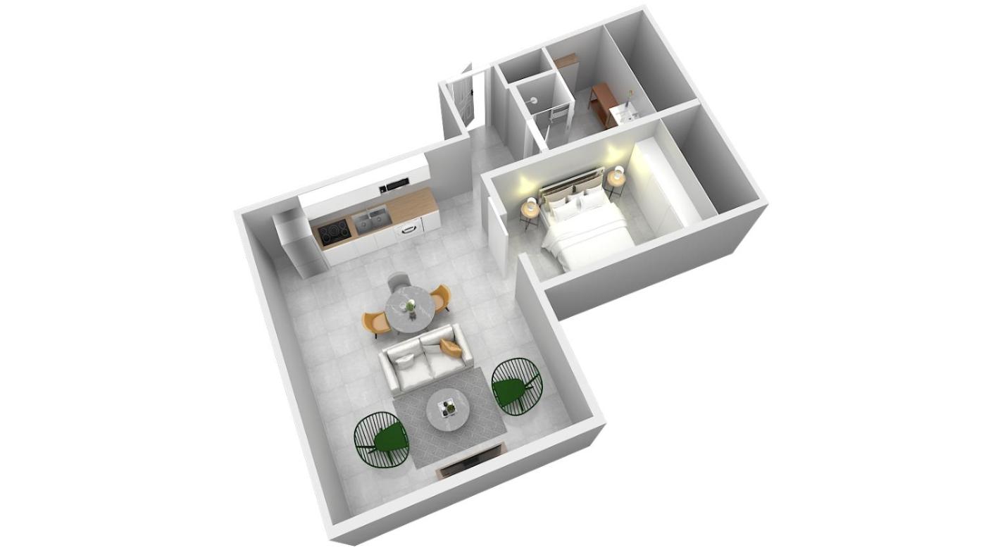 Appartement 1 Chambre. This air-conditioned apartment consists of 1 living room, 1 separate bedroom and 1 bathroom with a shower. In the well-fitted kitchen, guests will find a stovetop, a refrigerator, a dishwasher and kitchenware. The apartment provides a washing machine, a tea and coffee maker, a seating area, a dining area, as well as a flat-screen TV with streaming services. The unit offers 2 beds.