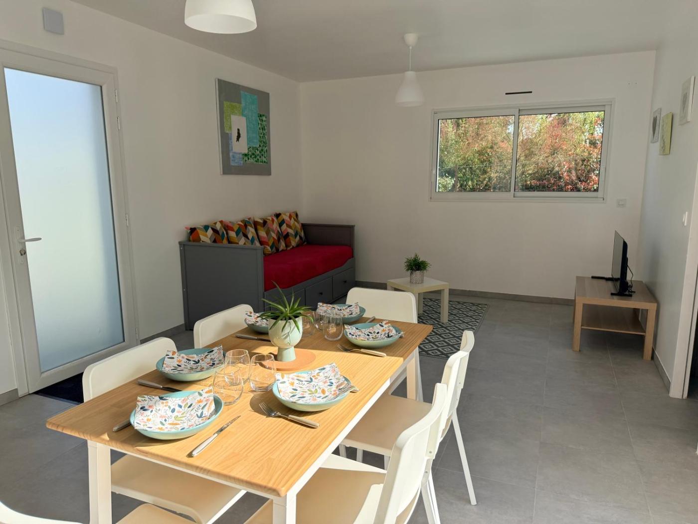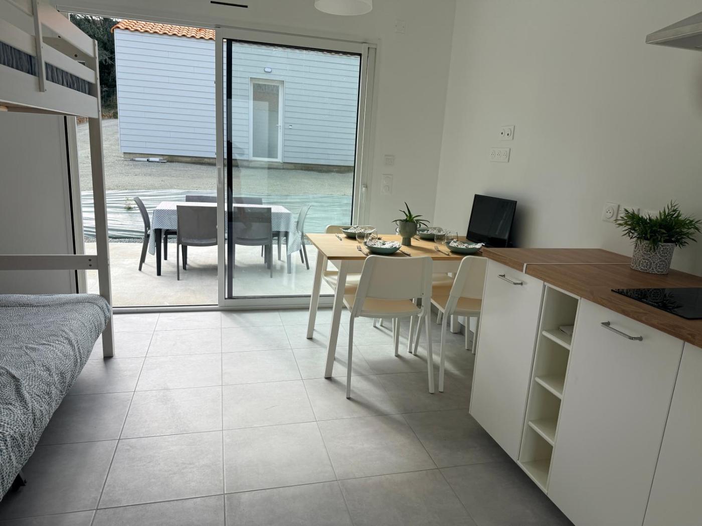 Maison 1 Chambre. Featuring a private entrance, this holiday home is comprised of 1 living room, 1 separate bedroom and 1 bathroom with a walk-in shower. Meals can be prepared in the well-fitted kitchen, which is fitted with a stovetop, a refrigerator, kitchenware and an oven. Boasting a terrace with garden views, this holiday home also offers a coffee machine and a flat-screen TV. The unit offers 3 beds. ;