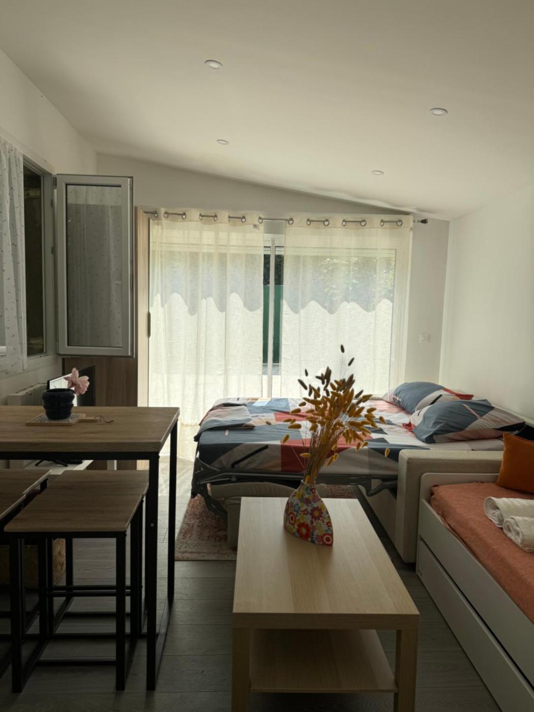 Appartement 1 Chambre. Boasting a private entrance, this apartment comes with 1 living room, 1 separate bedroom and 1 bathroom with a walk-in shower and a hairdryer. Guests can make meals in the kitchen that features a stovetop, a refrigerator, an oven and a microwave. Featuring a terrace with garden views, this apartment also features a tea and coffee maker and a flat-screen TV. The unit has 3 beds.