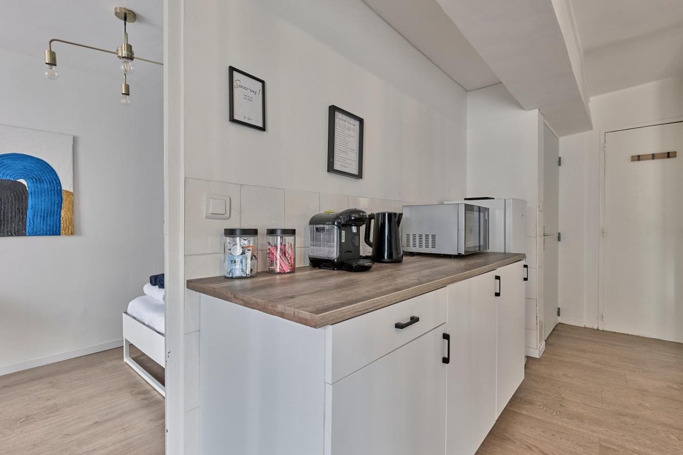Appartement 1 Chambre. Featuring 1 bedroom and 1 bathroom, this apartment offers a well-fitted kitchen and a dining area. The fully equipped kitchen has a stovetop, a refrigerator, a dishwasher and kitchenware. This apartment features a washing machine, flat-screen TV with streaming services, city views, as well as winechampagne for guests. The unit has 2 beds.
