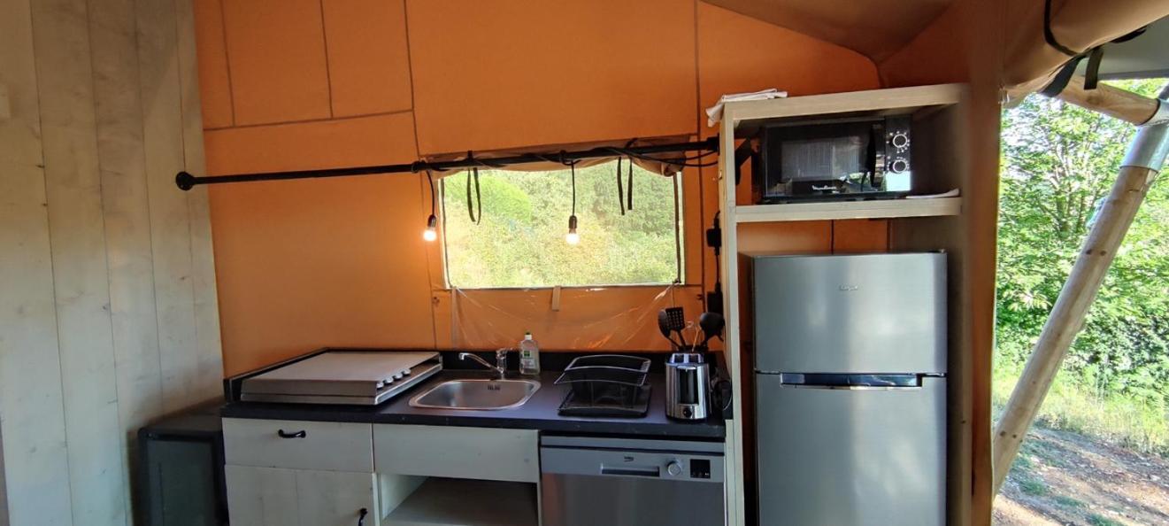 Tente. Guests will find a stovetop, a refrigerator, a dishwasher and kitchenware in the well-fitted kitchen. The tent also features a barbecue. The tent offers a coffee machine, a dining area, a terrace with lake views as well as a private bathroom boasting a shower. The unit has 4 beds.