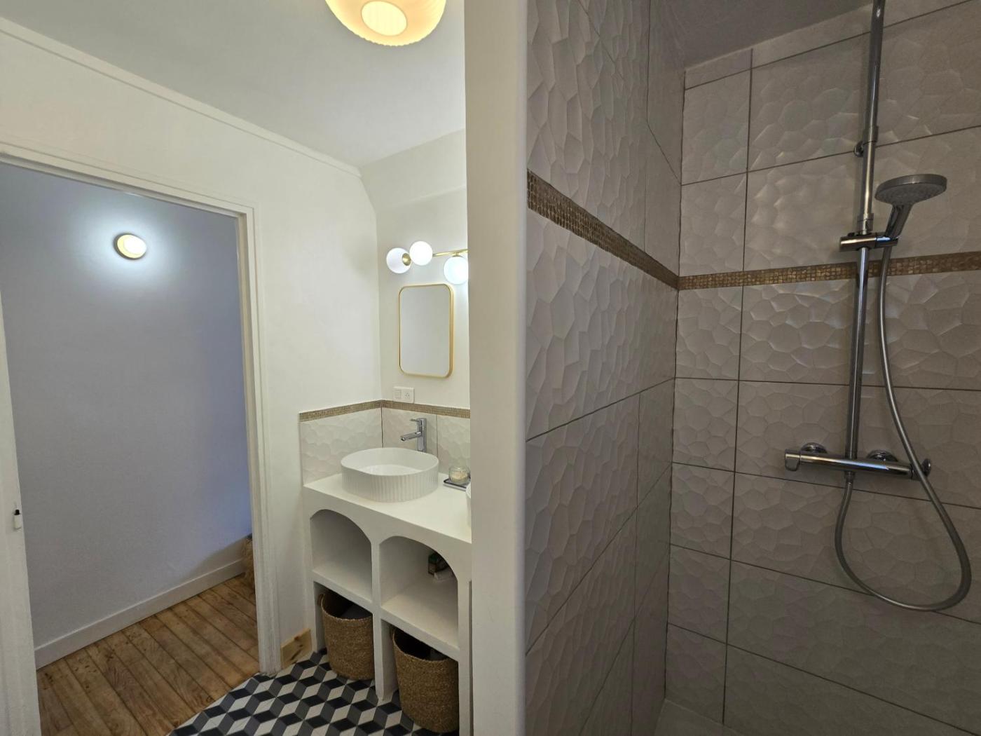 Chambre Lit King-Size. Offering free toiletries, this double room includes a private bathroom with a shower. The double room has parquet floors and offers a wardrobe, a dressing room and city views. The unit has 1 bed. ;