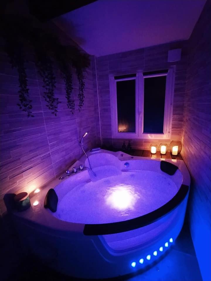 Chambre Double avec Baignoire Spa. This double room features a hot tub. Guests can make meals in the kitchenette that has a stovetop, a refrigerator, kitchenware and a microwave. The spacious double room features air conditioning, a private entrance, a terrace with garden views as well as a private bathroom boasting a bath. The unit has 1 bed.