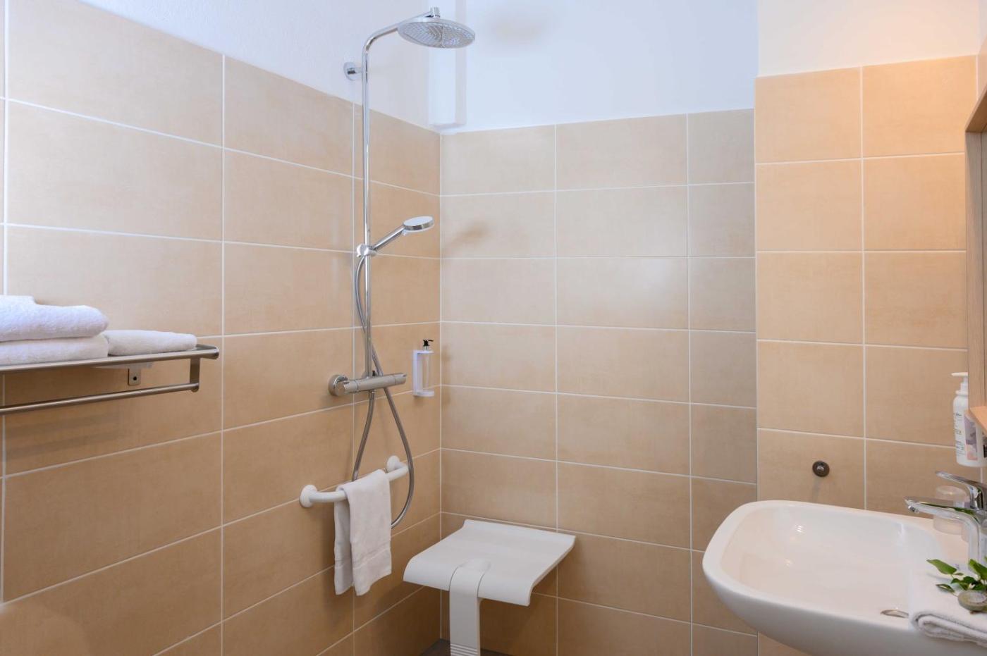 Chambre Double ou Lits Jumeaux - Accessible aux Personnes à Mobilité Réduite. The double room features a tea and coffee maker, a wardrobe, as well as a private bathroom boasting a walk-in shower and a hairdryer. This wheelchair accessible double room has air conditioning, a seating area with a flat-screen TV and a roll-in shower. ;