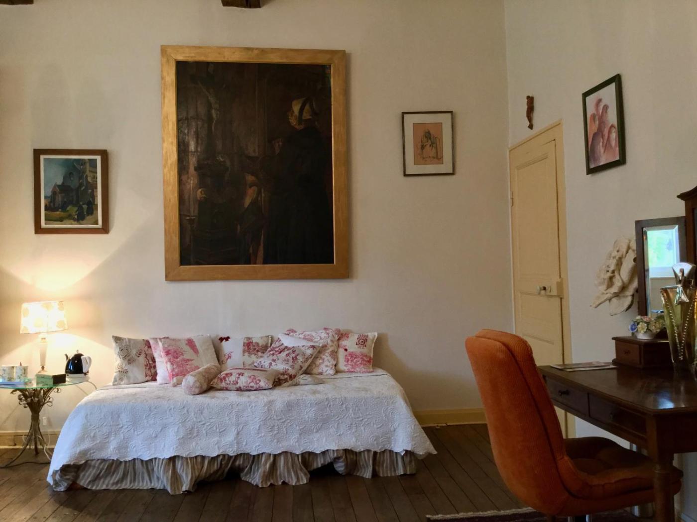 Chambre Lit King-Size - Vue sur Jardin. The spacious double room features a wardrobe, an electric kettle, as well as a private bathroom boasting a bath and a hairdryer. The double room offers parquet floors and heating. The unit has 2 beds. ;