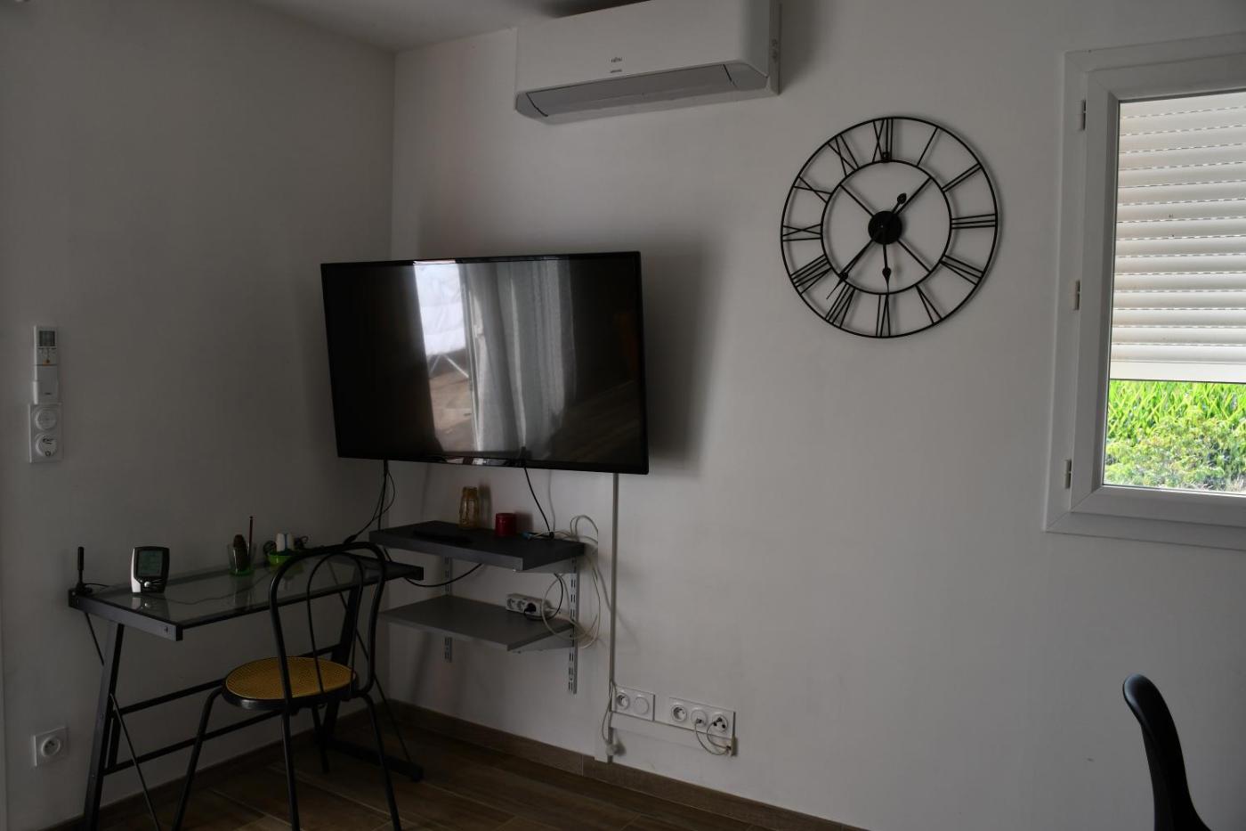Appartement 1 Chambre. Guests will have a special experience as the apartment features a private pool. Guests can make meals in the kitchenette that is equipped with a stovetop, a refrigerator, kitchenware and an oven. The air-conditioned apartment provides a flat-screen TV, a washing machine, a private entrance, a tea and coffee maker as well as garden views. The unit offers 1 bed.