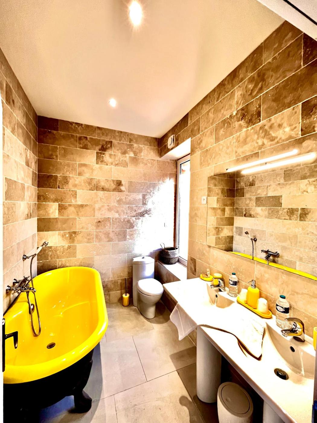 Chambre Double ou Lits Jumeaux avec Salle de Bains. The twindouble room offers a washing machine, a tea and coffee maker, as well as a private bathroom featuring a bath and a hairdryer. The twindouble room features a seating area, a dining area, a wardrobe, a flat-screen TV, as well as a quiet street view. The unit offers 2 beds. ;