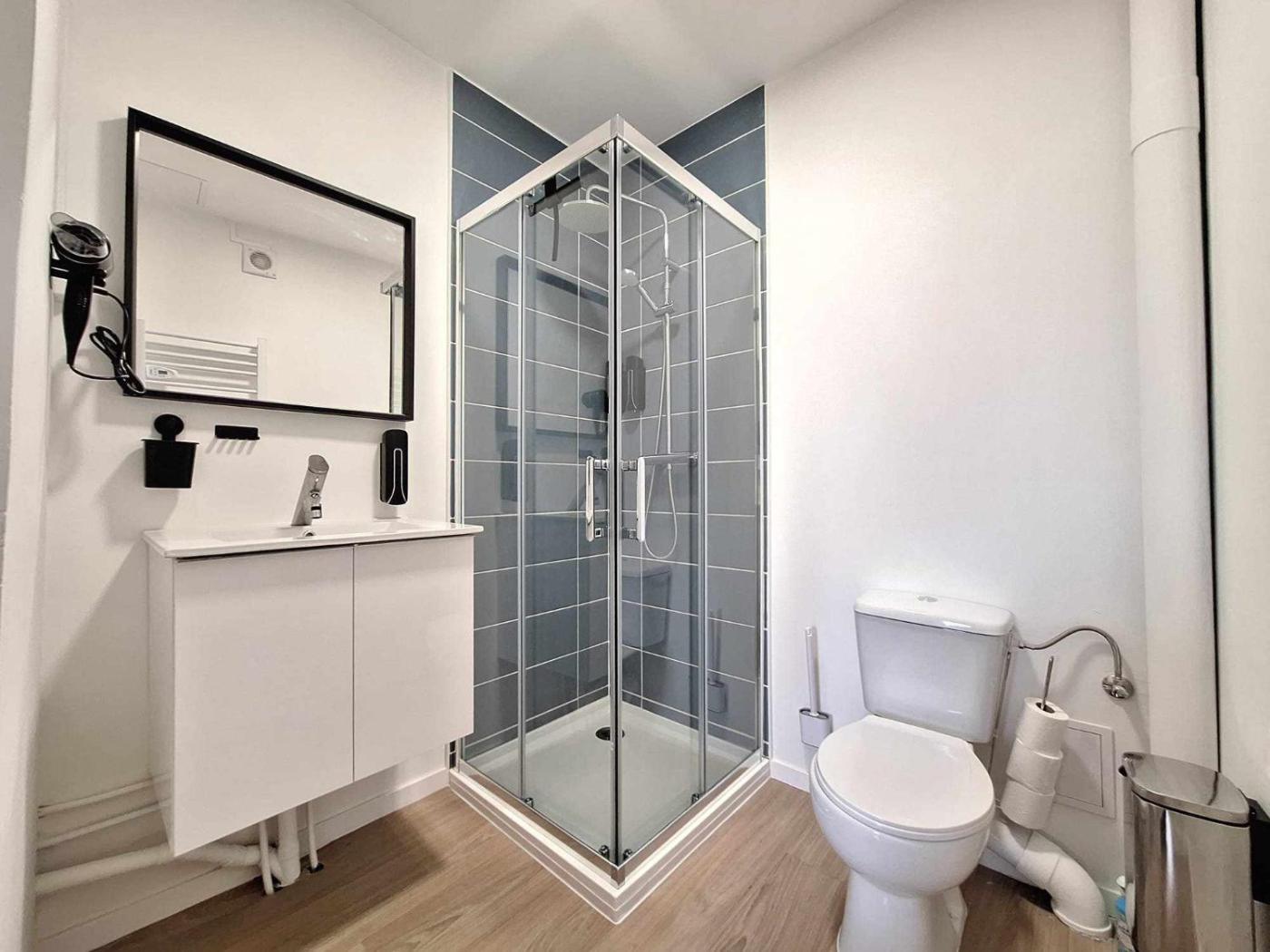 Appartement 2 Chambres. This apartment comes with 1 living room, 2 separate bedrooms and 1 bathroom with a shower and free toiletries. Guests can make meals in the kitchen that features a stovetop, a refrigerator, a dishwasher and kitchenware. The apartment features a flat-screen TV with streaming services, a tea and coffee maker, a seating area, a dining area as well as city views. The unit has 3 beds.