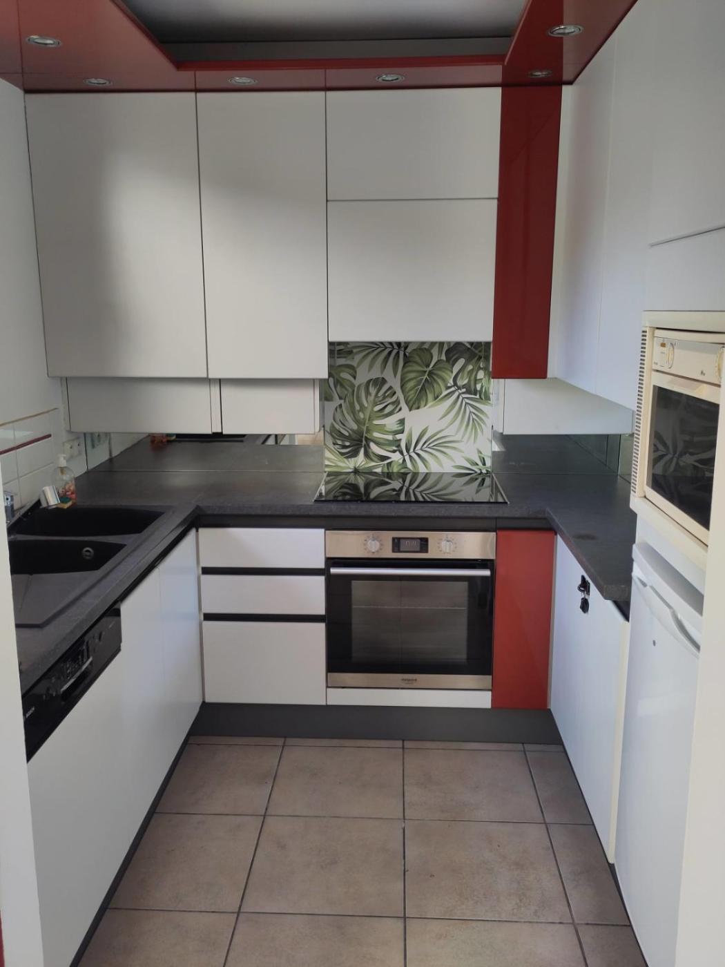 Room #1585571501. This holiday home comes with 1 living room, 1 separate bedroom and 1 bathroom with a shower and a hairdryer. The well-equipped kitchen has a refrigerator, a dishwasher, kitchenware and an oven. A seating area with a TV, a coffee machine and a terrace are available in this holiday home. The unit has 2 beds.