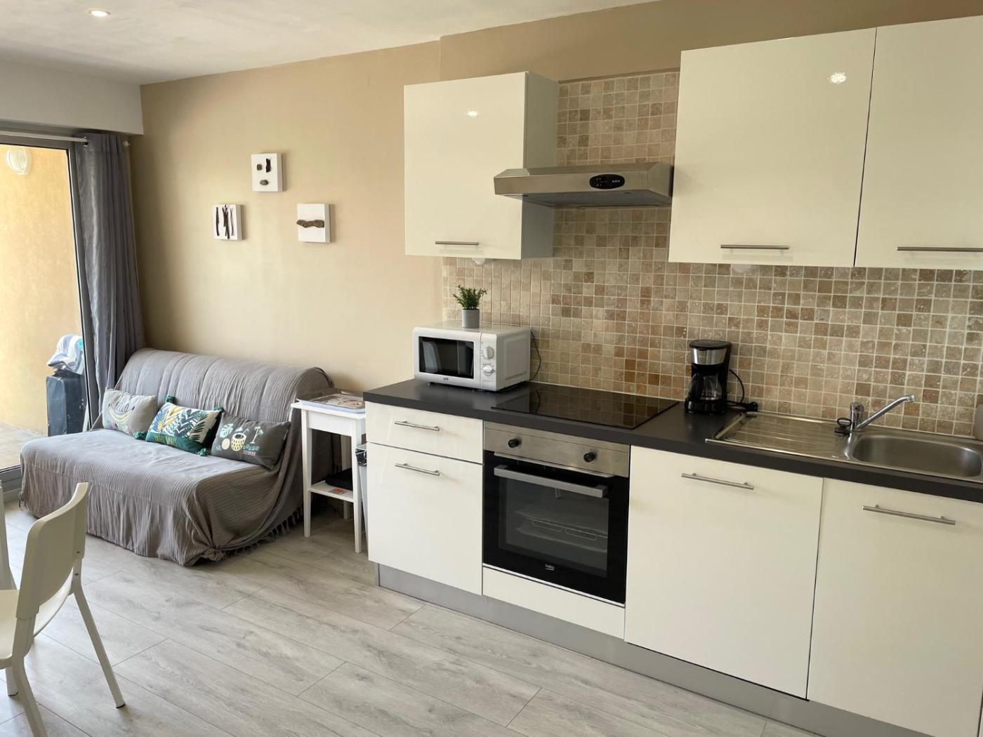 Studio. The well-equipped kitchen features a refrigerator, a dishwasher, kitchenware and an oven. The studio offers air conditioning, a washing machine, a terrace with sea views as well as a private bathroom featuring a walk-in shower. The unit offers 2 beds. ;