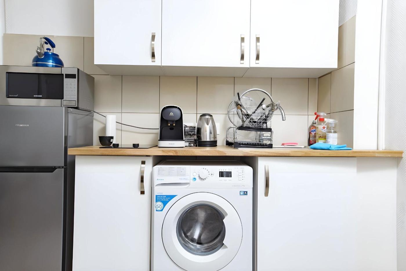 Appartement 1 Chambre. The apartment features 1 bedroom, 1 bathroom and a kitchen. Guests can make meals in the kitchen that is equipped with a refrigerator, kitchenware, an oven and a microwave. The apartment provides a washing machine, a tea and coffee maker, heating and a TV. The unit offers 3 beds.
