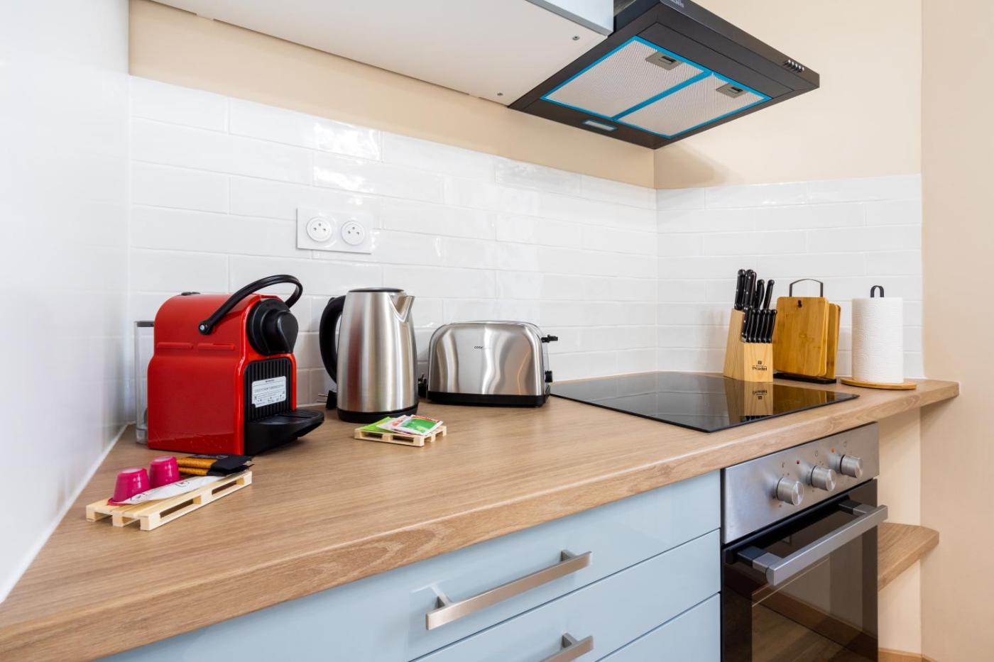 Studio. Featuring a private entrance, this apartment also comprises 1 bedroom, a seating area and 1 bathroom with a shower and a hairdryer. Meals can be prepared in the well-fitted kitchen, which comes with a stovetop, a refrigerator, an oven and a microwave. This apartment features a washing machine, soundproof walls, flat-screen TV with streaming services, as well as winechampagne for guests. The unit offers 1 bed.