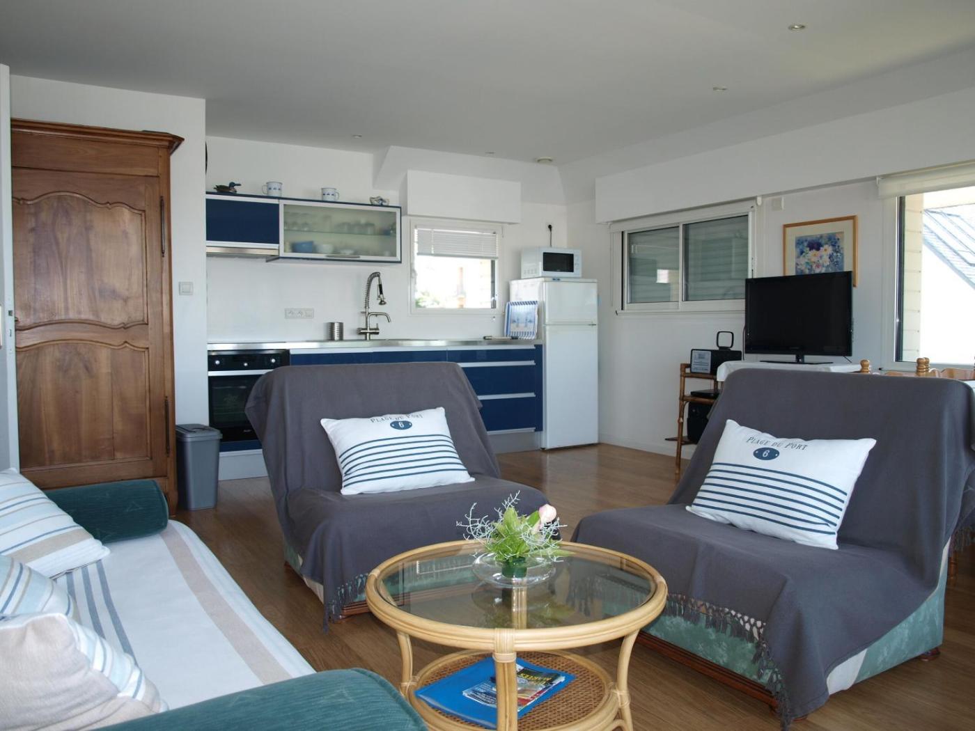 Appartement 2 Chambres. This apartment is comprised of 2 bedrooms, kitchen, a terrace and 1 bathroom with a shower. The well-equipped kitchen features a stovetop, a refrigerator, a dishwasher and an oven. Featuring a balcony with sea views, this apartment also offers a washing machine and a flat-screen TV. The unit offers 3 beds.