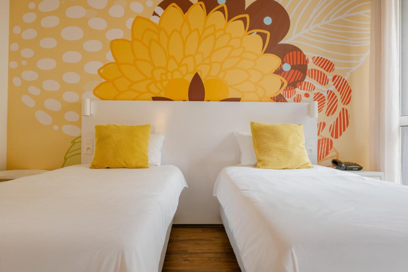 Chambre Lits Jumeaux. La chambre lits jumeaux dispose de la climatisation, d’une entrée privée, d’une terrasse avec vue sur une cour intérieure et d’une salle de bains privative avec une douche à litalienne. Ce logement comprend 2 lits. ;