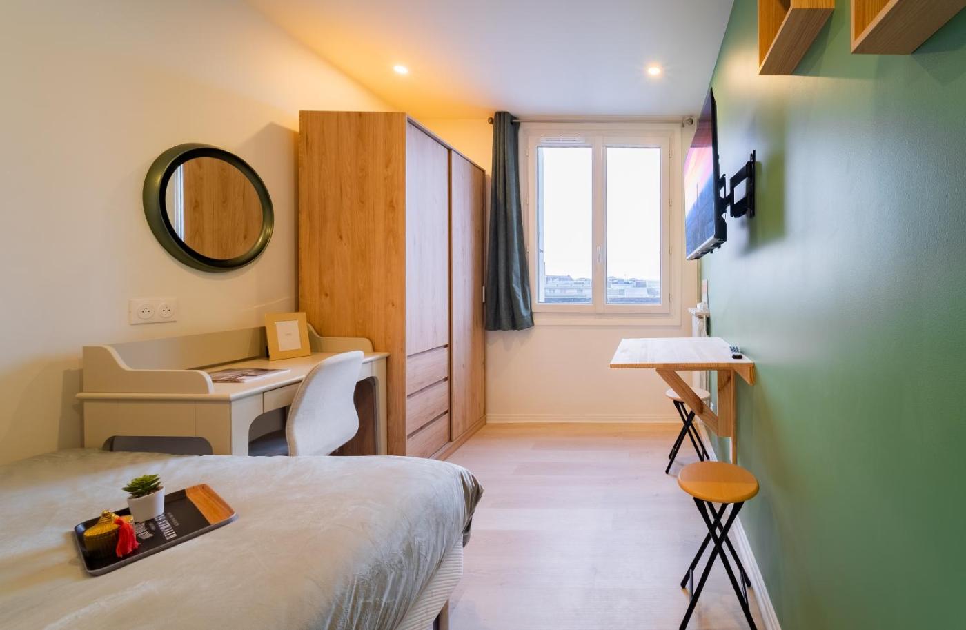Chambre Double avec Salle de Bains Commune. The double rooms kitchen, which has a refrigerator and a microwave, is available for cooking and storing food. The air-conditioned double room features a flat-screen TV with streaming services, a washing machine, a tea and coffee maker, tumble dryer as well as city views. The unit has 1 bed.