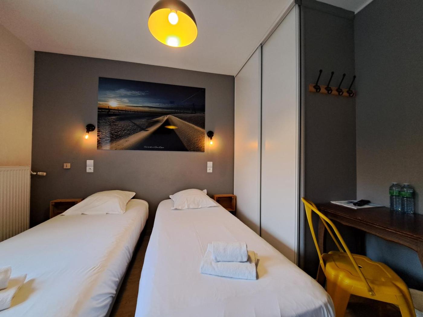 Chambre Quadruple avec Balcon. This quadruple room is comprised of a flat-screen TV with cable channels, a private bathroom as well as a balcony with garden views. The unit has 3 beds. ;