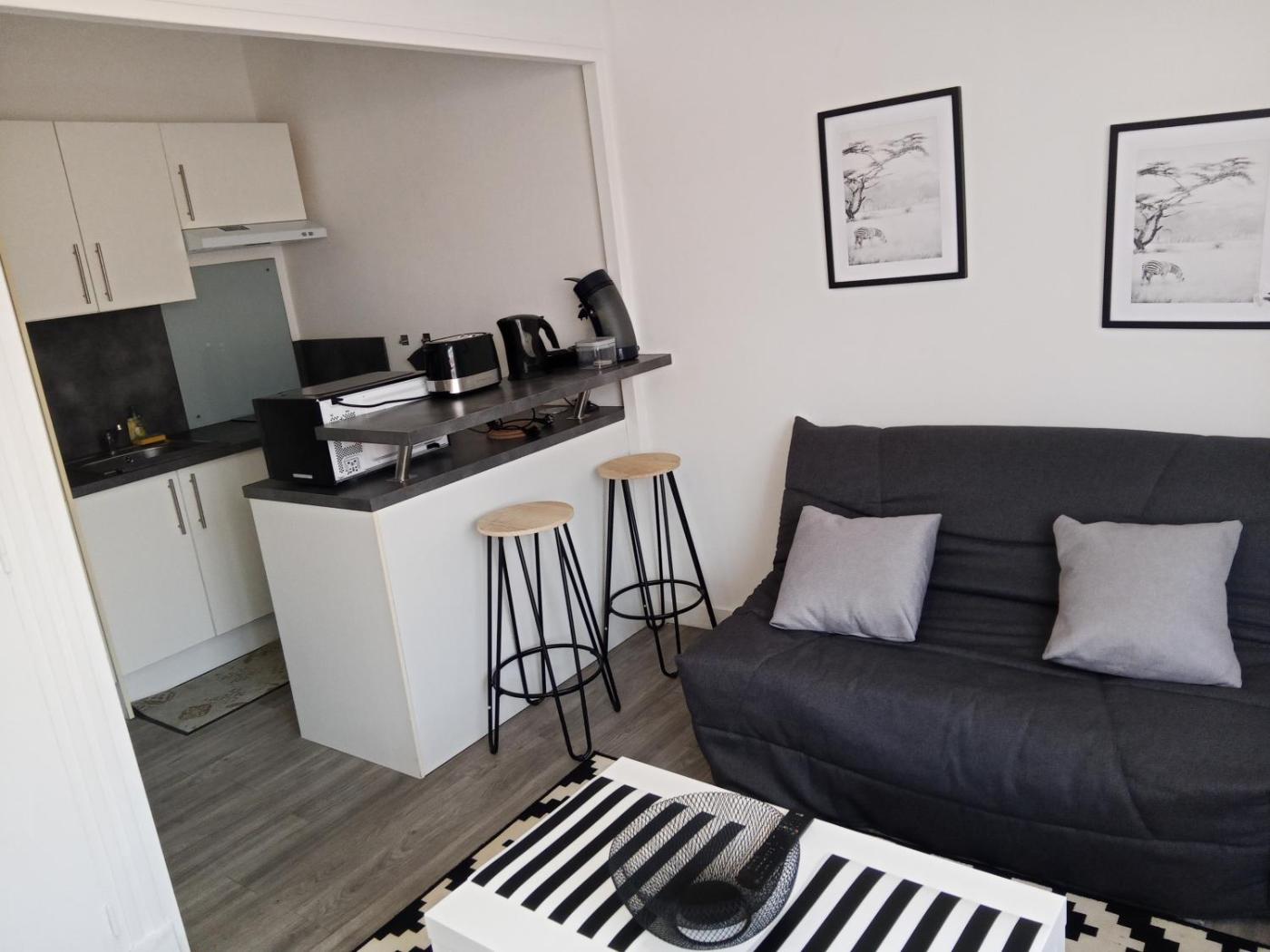 Appartement 1 Chambre. The air-conditioned apartment features 1 bedroom and 1 bathroom with a shower and a hairdryer. In the well-equipped kitchen, guests will find a stovetop, a refrigerator, kitchenware and an oven. This apartment has a tea and coffee maker, a seating area, a flat-screen TV and a terrace. The unit offers 1 bed.