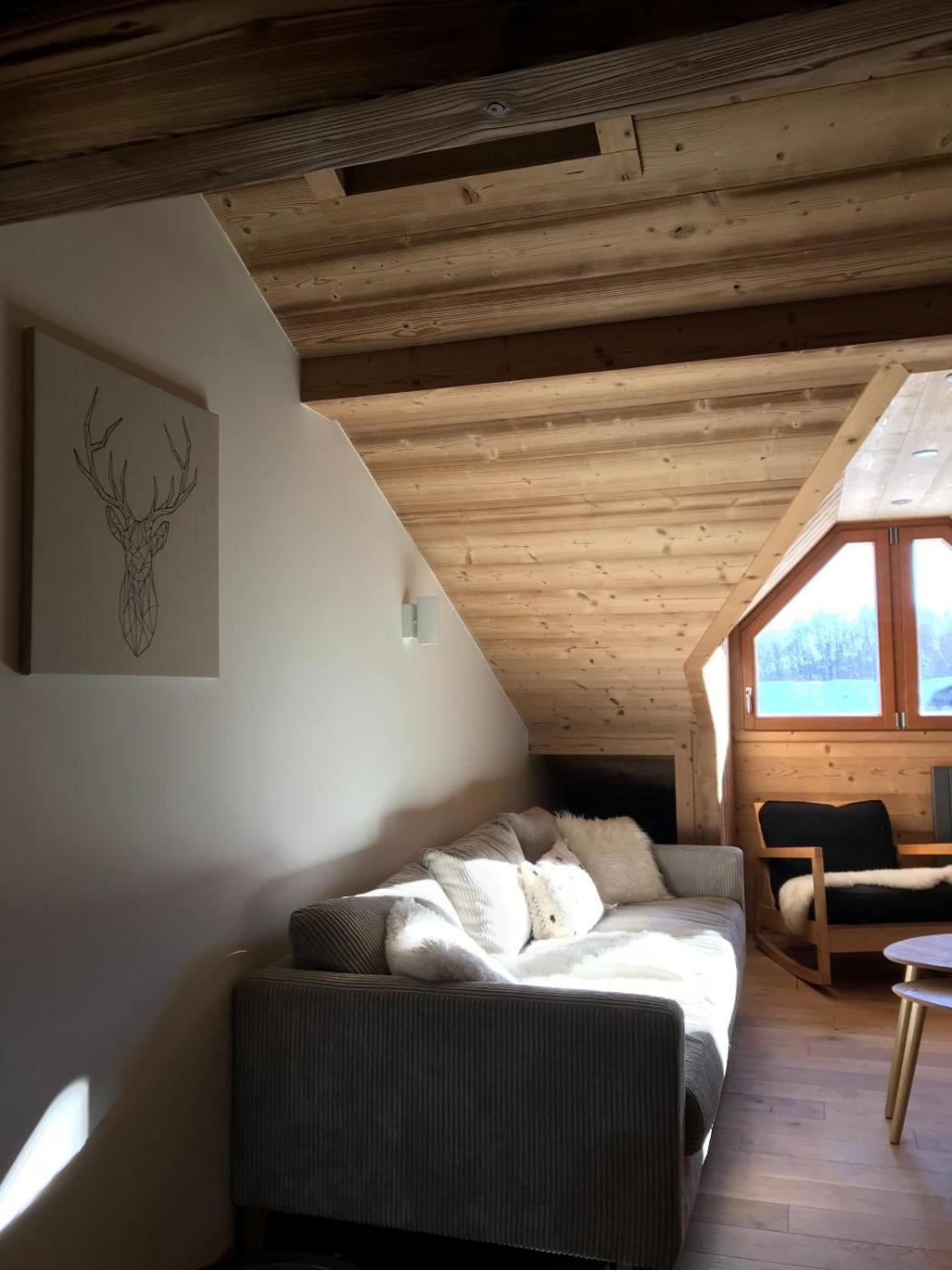 Appartement 3 Chambres avec Vue sur la Montagne. The sauna is the standout feature of this apartment. Boasting a private entrance, this apartment comes with 3 bedrooms and 1 bathroom with a hairdryer. Meals can be prepared in the kitchen, which features a dishwasher, kitchenware, an oven and a microwave. The apartment features a washing machine, a coffee machine, a high chair for children, a TV, as well as mountain views. The unit has 5 beds and 1 futon.