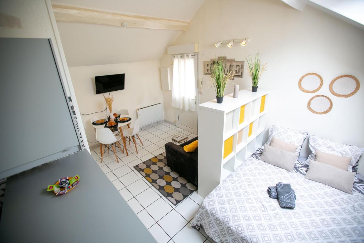 Appartement 1 Chambre. This apartment features a kitchen, a seating area, 1 separate bedroom and 1 bathroom with a shower and a hairdryer. Guests can make meals in the kitchen that features a stovetop, a refrigerator, kitchenware and a microwave. This apartment has a washing machine, flat-screen TV, city views, as well as winechampagne for guests. The unit has 1 bed.