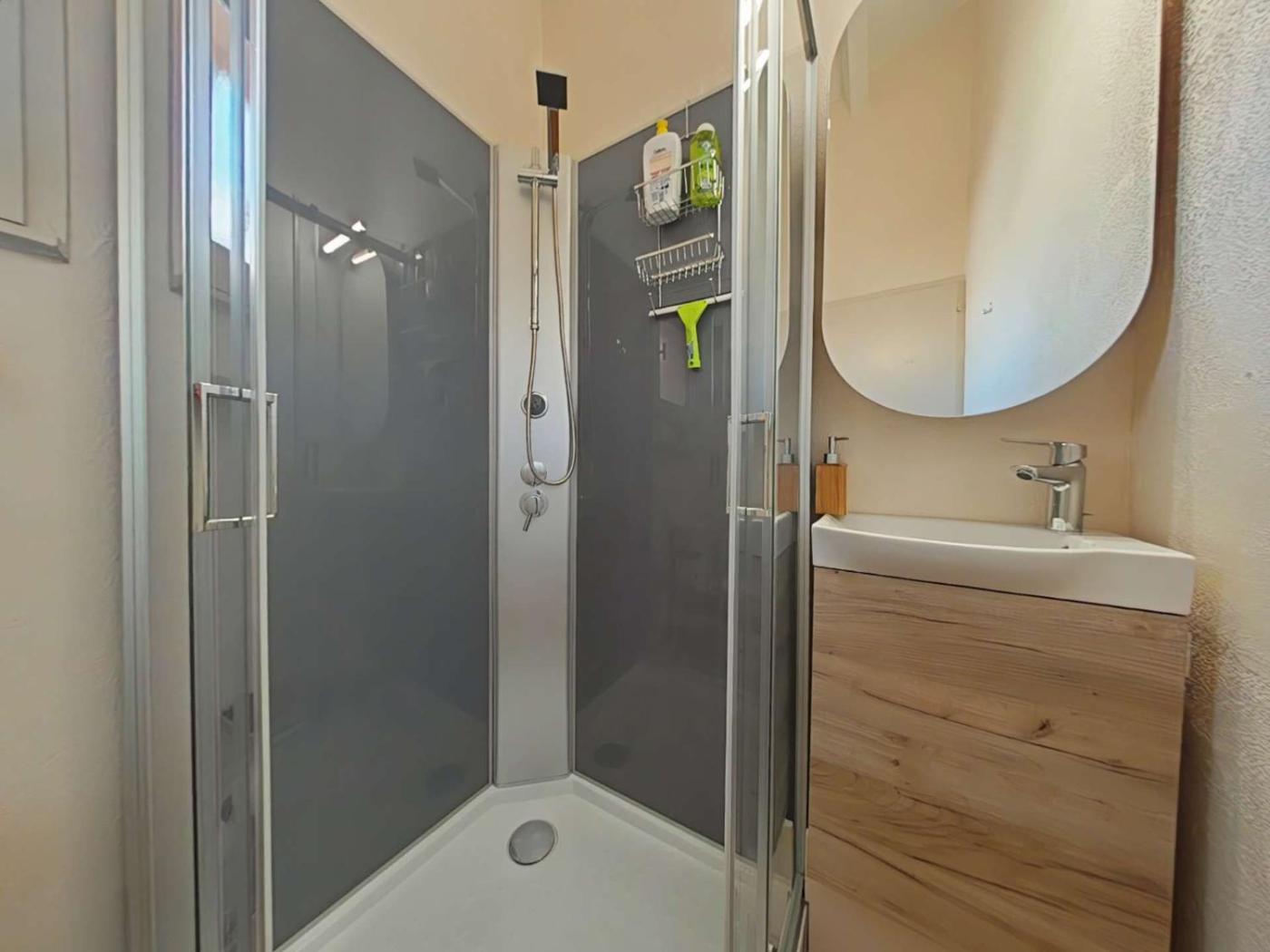 Appartement 1 Chambre. The apartment has 1 bedroom, 1 bathroom and a kitchenette. The apartments kitchenette, which features a refrigerator, is available for cooking and storing food. The unit has 1 bed.