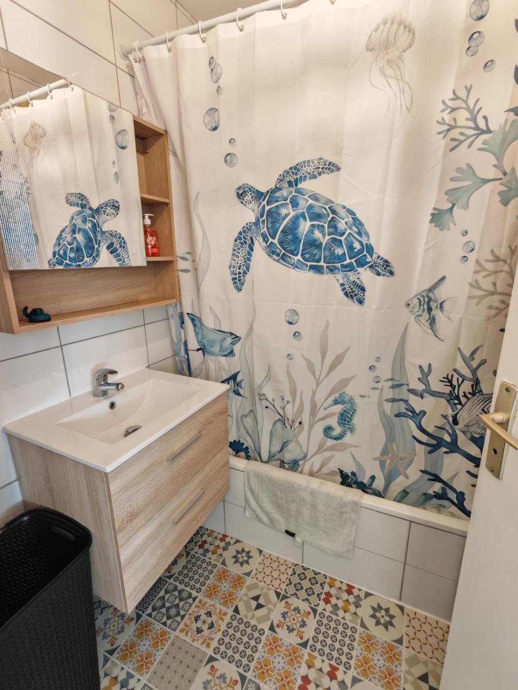 Appartement 1 Chambre. This apartment includes 1 living room, 1 separate bedroom and 1 bathroom with a bath and a shower. In the well-fitted kitchen, guests will find a stovetop, a refrigerator, a dishwasher and kitchenware. The apartment has parquet floors, a seating area with a flat-screen TV with streaming services, a washing machine, a tea and coffee maker, as well as a wardrobe. The unit has 2 beds.