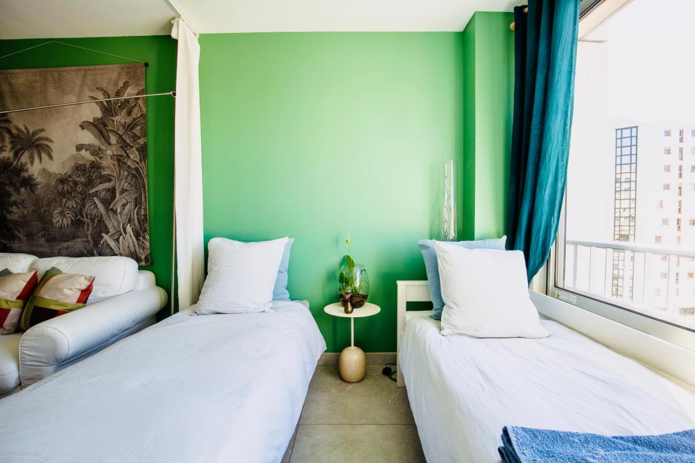 Appartement 2 Chambres. This spacious apartment consists of 1 living room, 2 separate bedrooms and 1 bathroom with a shower and free toiletries. The fully equipped kitchen features a stovetop, a refrigerator, a dishwasher and kitchenware. The air-conditioned apartment provides a flat-screen TV, a washing machine, a private entrance, soundproof walls as well as garden views. The unit offers 3 beds. ;
