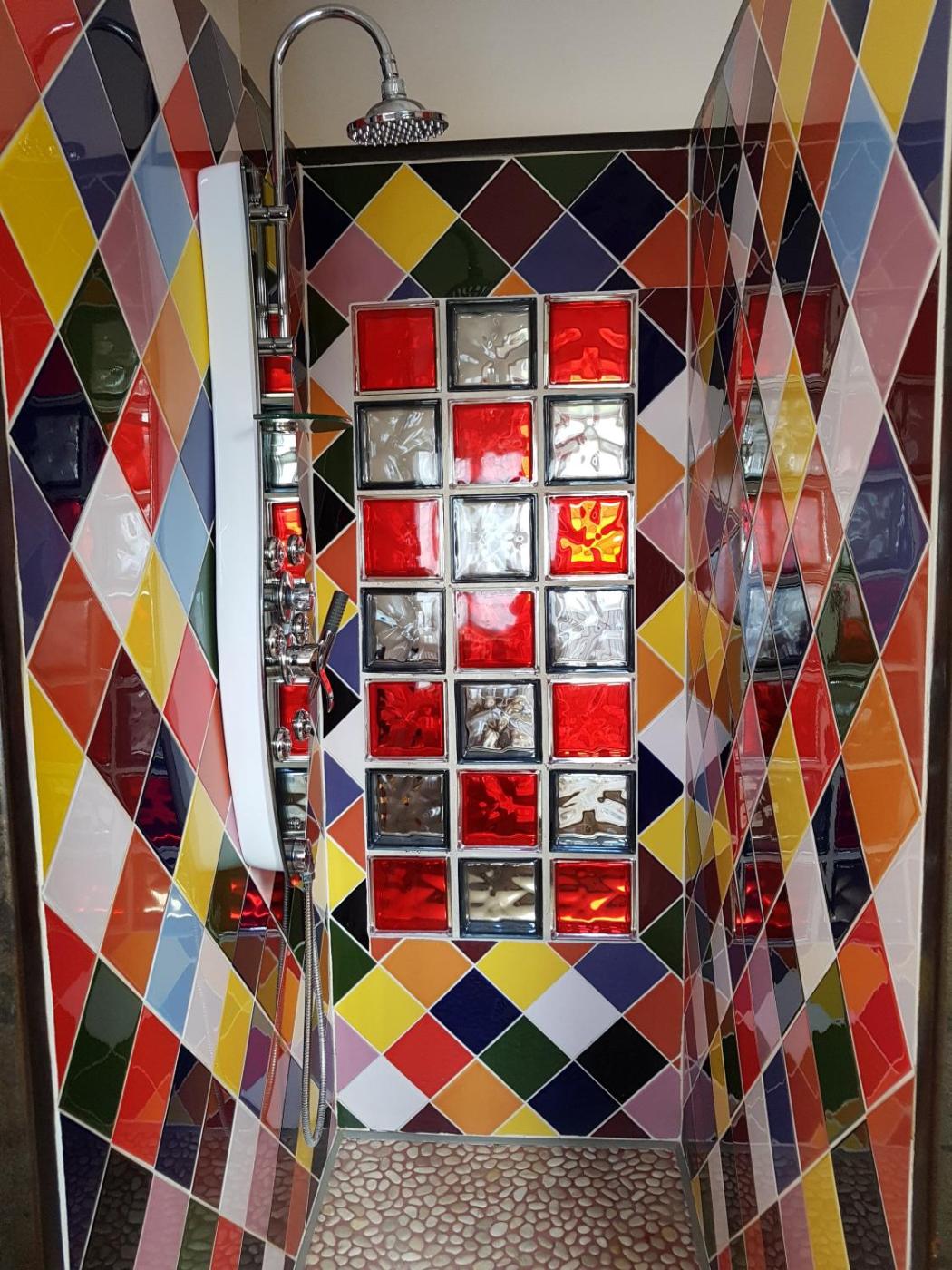 Chambre Double Deluxe avec Douche. The double room provides a private entrance, a seating area, as well as a private bathroom featuring a walk-in shower and a hairdryer.