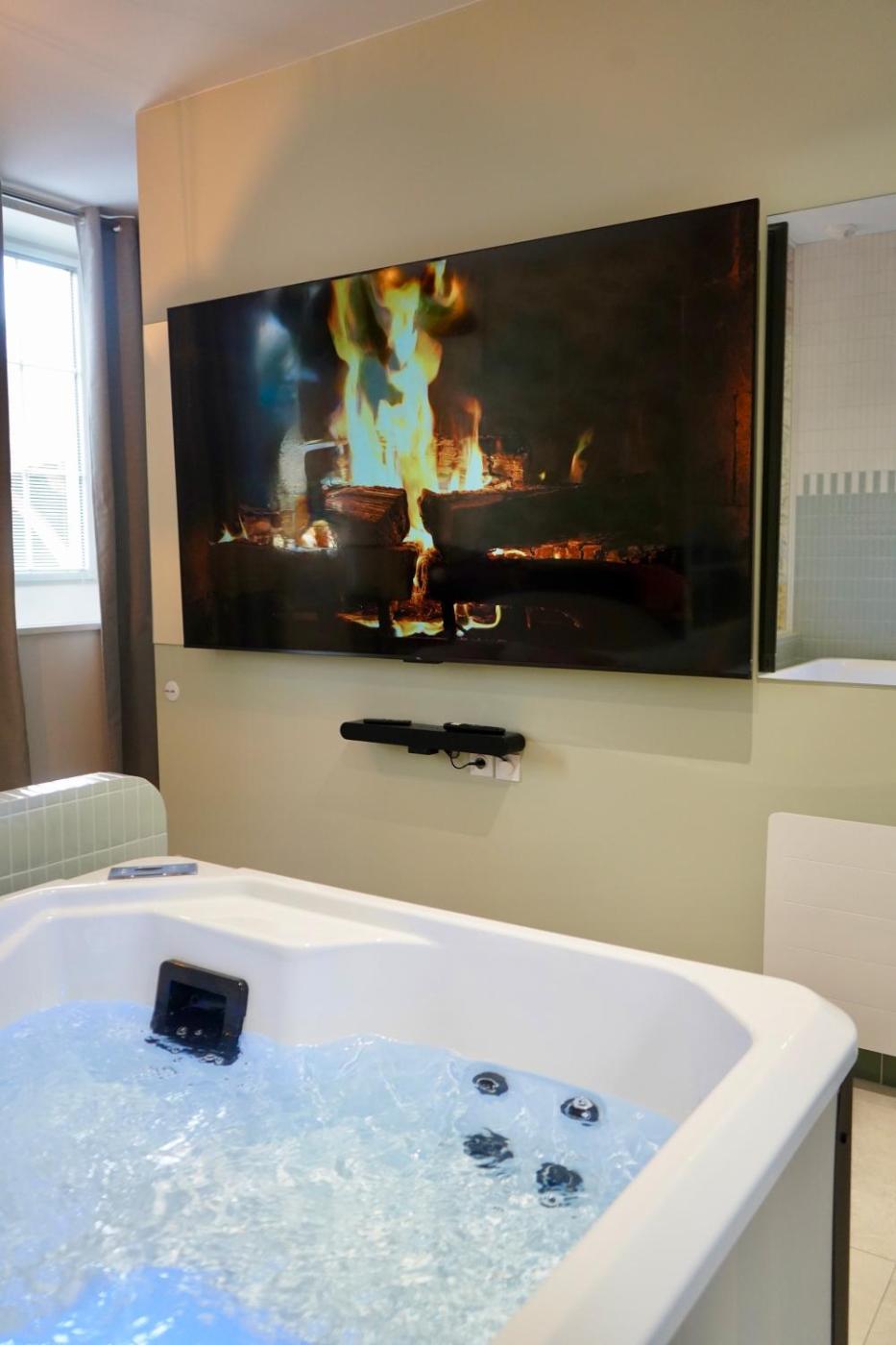 Suite Deluxe avec Baignoire Spa. Guests will have a special experience as this suite provides a spa bath. The suite features 1 bedroom and 1 bathroom with a shower and free toiletries. The suite offers a dining area, a wardrobe, an electric kettle, heating and a flat-screen TV with streaming services. The unit offers 1 bed.