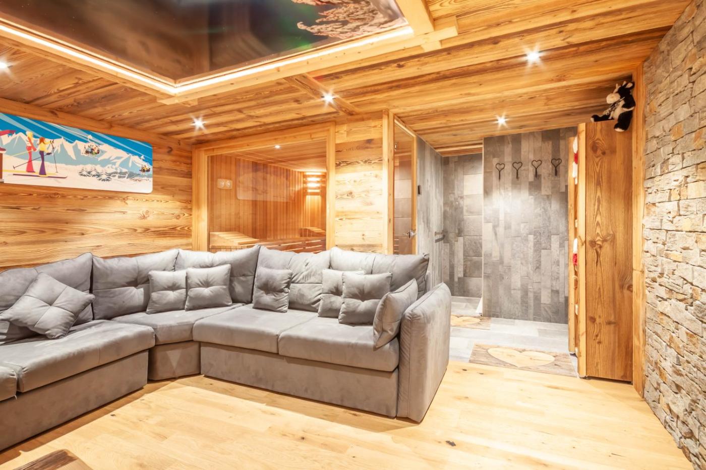 Chalet. Guests will have a special experience as this chalet provides a sauna and a fireplace. This spacious chalet is comprised of 1 living room, 5 separate bedrooms and 4 bathrooms with a bath and free toiletries. Guests will find a stovetop, a refrigerator, a dishwasher and kitchenware in the well-equipped kitchen. The chalet also has a barbecue. Featuring a terrace, this chalet also offers a washing machine, a private entrance and a flat-screen TV with cable channels. The unit offers 10 beds.