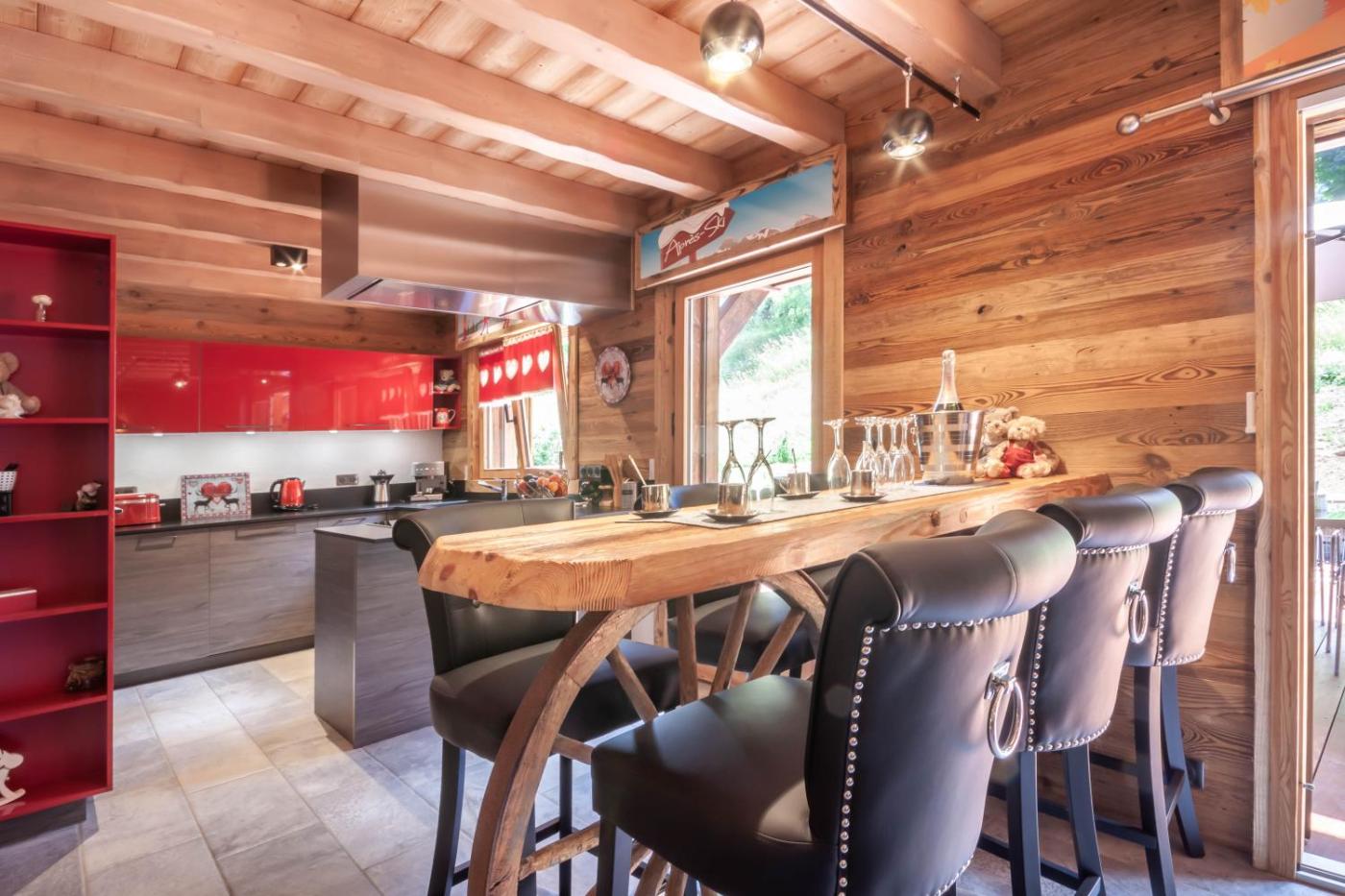 Ce chalet se compose de 5 chambres, dun salon, dune cuisine entièrement équipée avec un réfrigérateur et une machine à café, ainsi que de 4 salles de bains avec une douche et des articles de toilette gratuits. Des serviettes et du linge de lit sont à disposition.