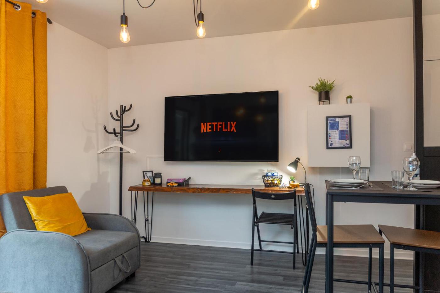 Appartement 1 Chambre. This apartment is comprised of 1 bedroom, kitchen, a terrace and 1 bathroom with a shower. The well-equipped kitchen has a stovetop, a refrigerator, kitchenware and a microwave. This apartment features a tea and coffee maker, flat-screen TV with streaming services, ancourtyard view, as well as chocolate for guests. The unit offers 1 bed.