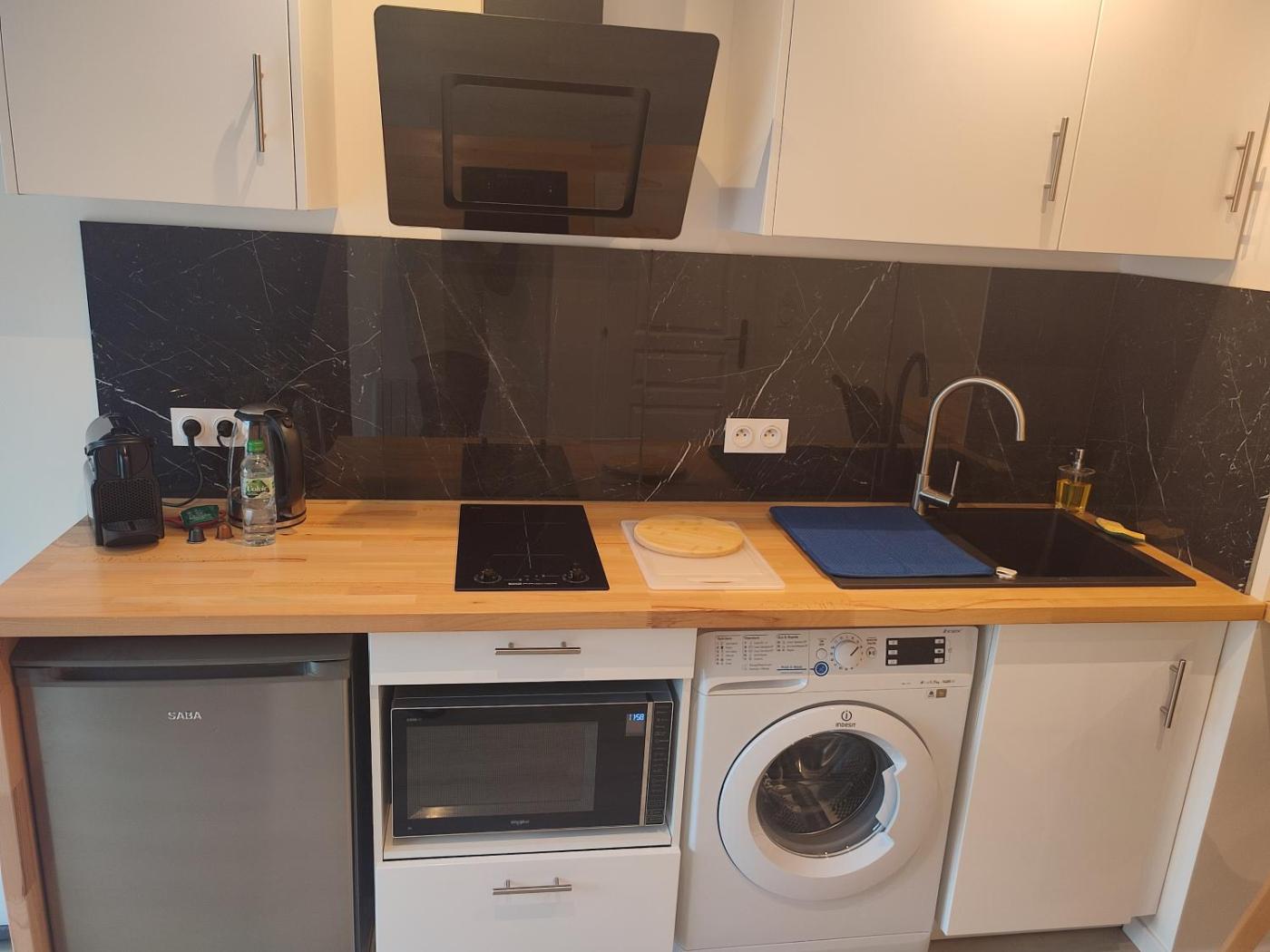 Cet appartement se compose de 1 chambre, dun salon, dune cuisine entièrement équipée avec un réfrigérateur et une machine à café, ainsi que de 1 salle de bains avec une douche et des articles de toilette gratuits. Des serviettes et du linge de lit sont à disposition.