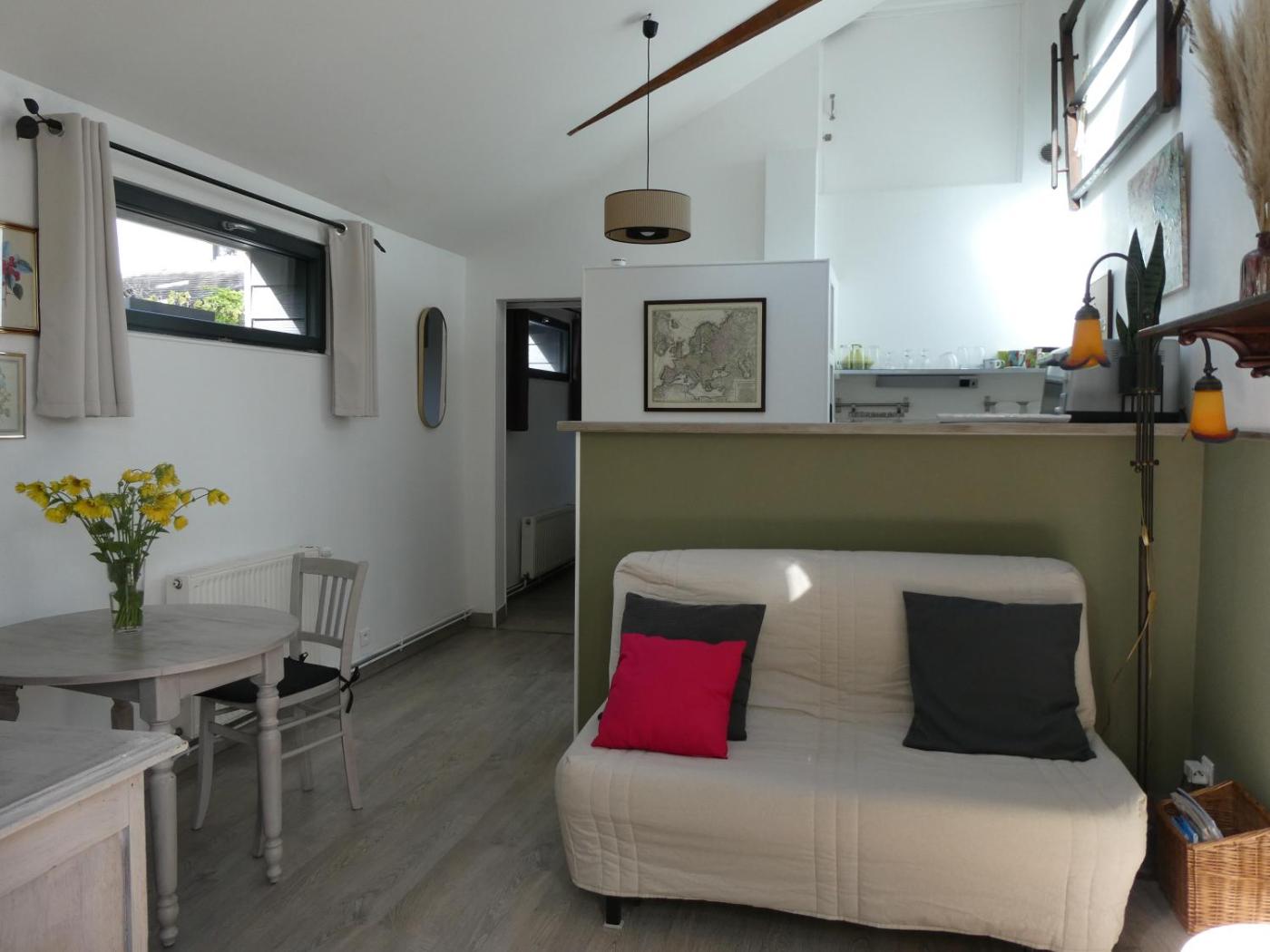Maison 1 Chambre. Boasting a private entrance, this holiday home features 1 living room, 1 separate bedroom and 1 bathroom with a shower and a hairdryer. Guests will find a stovetop, a refrigerator, a dishwasher and kitchenware in the fully equipped kitchenette. The holiday home also comes with a barbecue. Featuring a terrace with garden views, this holiday home also features a tea and coffee maker and a flat-screen TV. The unit has 2 beds.